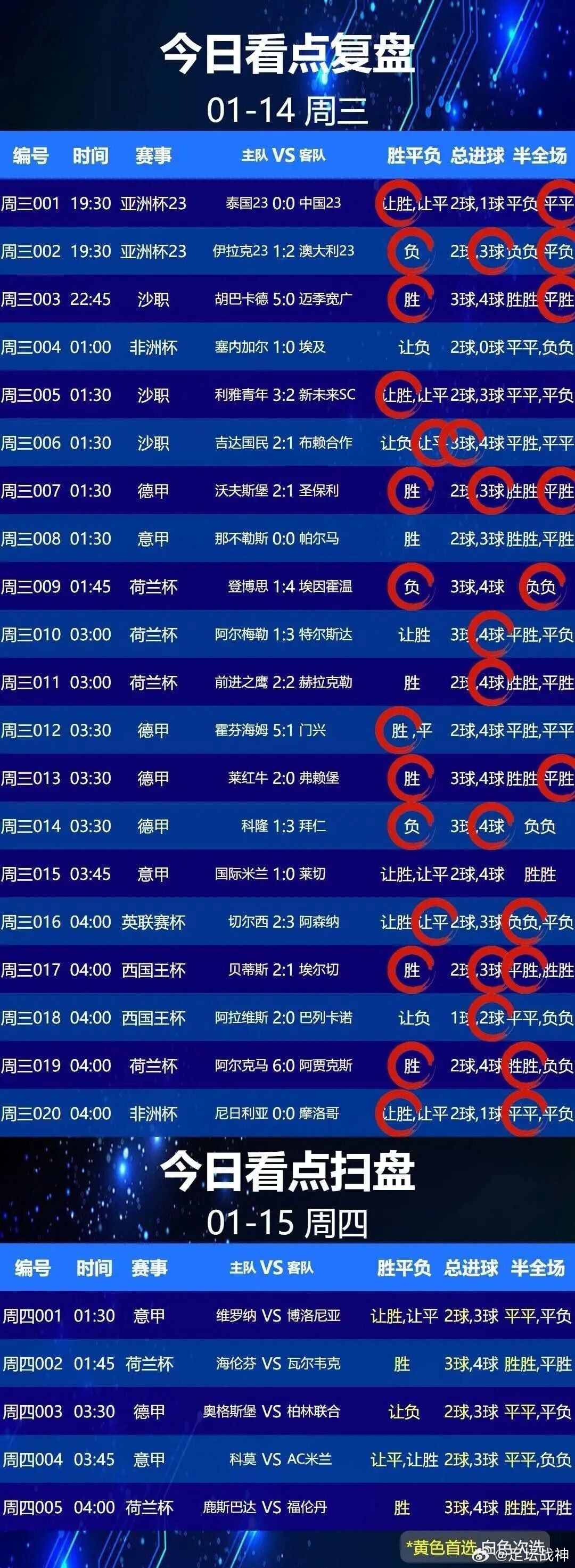 1月15日001 维罗纳 VS 博洛尼亚002 海伦芬 VS 瓦尔维克003 奥格斯堡VS 柏林联合