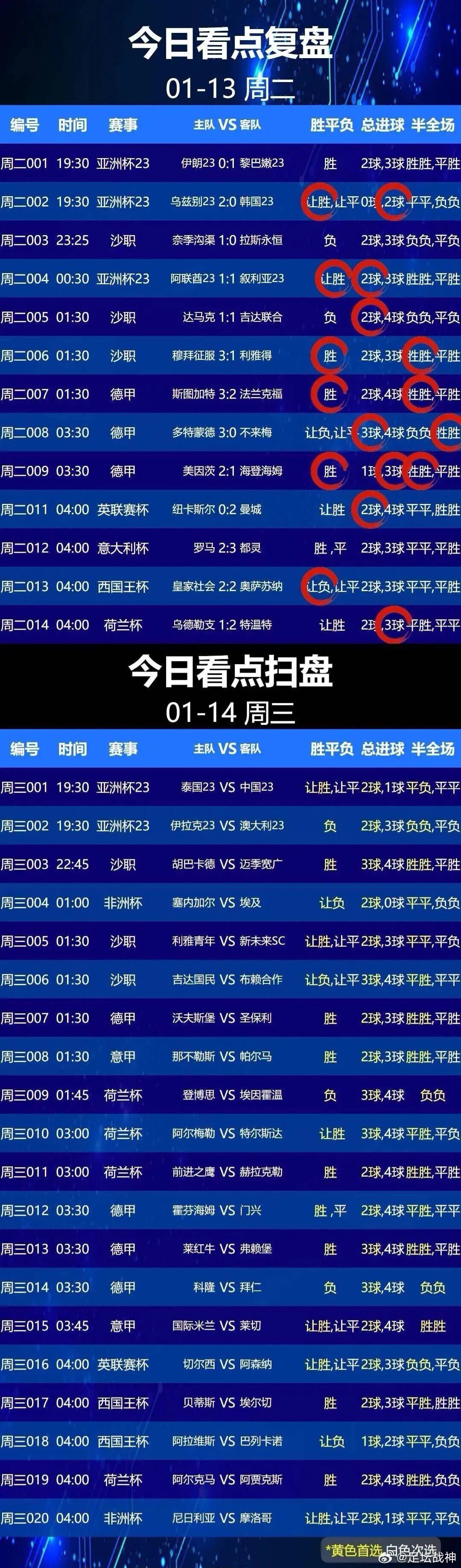 1月15日001 维罗纳 VS 博洛尼亚002 海伦芬 VS 瓦尔维克003 奥