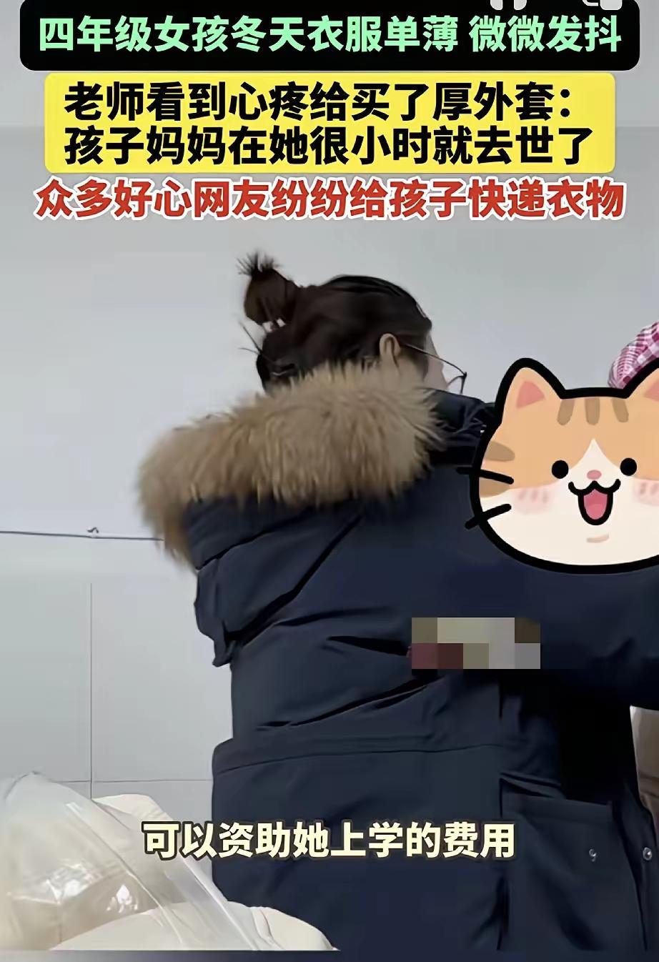 万万没有想到,云南一小学英语老师,因看见她教的四年级女生,在下雪天还衣着单薄的上学,女生在食堂吃饭时,更是被冻得微微发抖。老师看到后心疼孩子,便为其买了厚外套,并将女生衣着单薄的背影拍了下来,发到网上称“孩子妈妈在她很小时就去世了,孩子特别可怜…”。不料事情一经发布,众多好心网友便纷纷私信老师,给孩子快递来了衣物生活用品等,还有网友表示要资助孩子上学。 老师后来才慢慢摸清孩子的情况。女孩叫小诺,家在附近山区的村落里,爸爸常年在外省工地打零工,一年到头回不了一次家,家里只有年迈的奶奶带着她生活。奶奶有严重的风湿,阴雨天连下床都困难,根本没精力顾及孩子的穿戴,家里的经济来源全靠爸爸不稳定的收入,能供孩子上学就已经拼尽全力,添件厚外套成了奢侈的事。云南的冬天很特别,很多人以为这里四季如春,却不知道山区昼夜温差极大,像小诺所在的区域,冬季极端最低气温能降到0℃左右,白天晒着太阳还好,一到清晨和傍晚,寒风裹着湿气往骨头里钻,成年人都得裹紧棉衣,更别说只穿两件单衣的孩子。 老师给小诺试穿新外套时,孩子攥着衣角半天不敢动,手指冻得红肿粗糙,指甲缝里还嵌着泥垢。她小声说谢谢,声音细得像蚊子叫,眼睛却亮得惊人。那些天老师只要有空就往小诺家里跑,帮奶奶做点家务,给小诺辅导作业,她拍下背影发上网时,压根没想过会引发这么大的反响,只是单纯觉得“这么乖的孩子,不能让她冻着”。 网友的爱心来得又快又猛。短短一周,学校传达室就堆起了半屋子包裹,从羽绒服、保暖内衣到围巾手套,还有崭新的书包、文具和营养品。有位网友特意寄来两双加绒运动鞋,附言里写着“知道山区路不好走,厚底鞋能护脚”;还有位做餐饮的网友,定期给小诺寄去真空包装的肉类和坚果,让她补充营养。老师和学校一起整理物资时发现,很多捐赠者都考虑得特别周到,衣物大多是适合孩子身高的尺码,文具也都是实用的作业本和工具书,甚至有网友主动联系老师,提出要承担小诺从小学到大学的学费,只要求“别让孩子有心理负担”。 这份突如其来的温暖,让小诺慢慢变了样。她不再总是缩着肩膀低着头,课间会和同学一起跳绳,脸上也有了笑容。但看着堆积如山的物资,老师心里渐渐生出一丝隐忧。她发现有些衣物因为运输过程中受潮,需要晾晒消毒后才能穿;还有些网友寄来的玩具和课外书,虽然心意可贵,但小诺目前更需要的是保暖用品和学习资料。更让她在意的是,有媒体想上门采访小诺,被她果断拒绝了——孩子的敏感和自尊,比任何捐赠都值得呵护。 其实在云南山区,像小诺这样的孩子还有不少。近年来虽然有“暖冬同行”“情系红河”等公益项目不断发力,为山区学生送去校服、冬被等物资,但部分偏远村落依然存在物资短缺的问题。这些孩子不是缺爱,而是缺少被看见的机会。老师的一条朋友圈,意外搭建了爱心桥梁,却也暴露了网络公益的短板:热度来得快,可能退得也快;捐赠热情高,但精准度有待提升。小诺的幸运是个例,更多孩子需要的是长期、稳定的帮扶机制,而不是一次性的物资堆砌。 真正的善意,从来不是一时的感动跟风。网友的爱心值得点赞,但更该思考如何让这份爱可持续。学校可以建立精准帮扶清单,让捐赠者知道孩子真正需要什么;相关部门可以联动公益平台,将分散的爱心整合起来,形成长效帮扶机制;而我们每个人在献出爱心时,也该多一份考量,避免造成资源浪费。小诺的故事之所以让人动容,不仅因为网友的慷慨,更因为老师那份发自内心的心疼,这份不加修饰的善意,才是点燃爱心的火种。 善意不分大小,贵在真诚与持久。当个体的微光汇聚成炬,就能照亮山区孩子的求学路。但如何让这份光亮不熄灭,如何让更多需要帮助的孩子被精准看见,是值得我们所有人深思的问题。 各位读者你们怎么看?欢迎在评论区讨论。