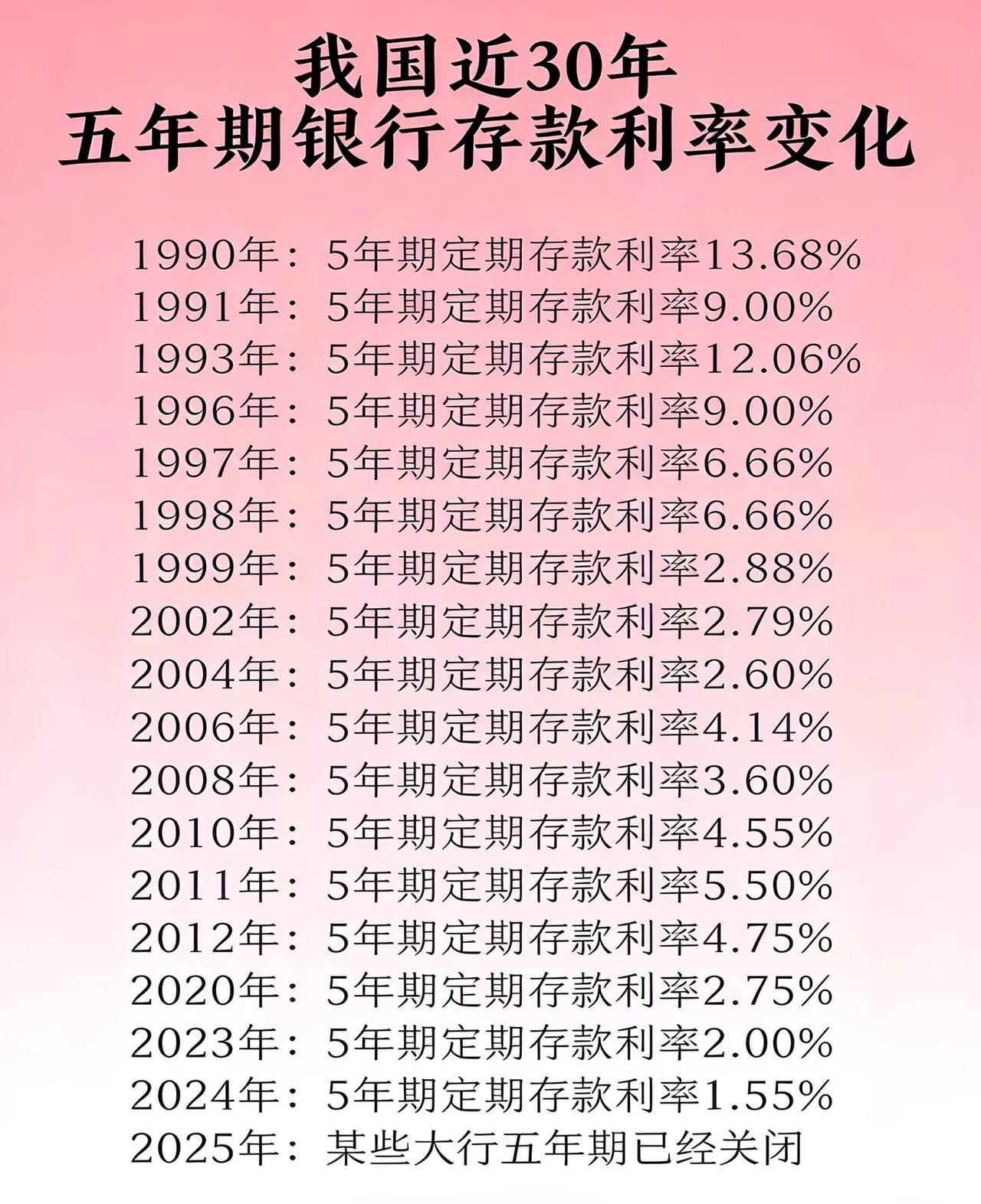 近30年,五年期银行利率变化