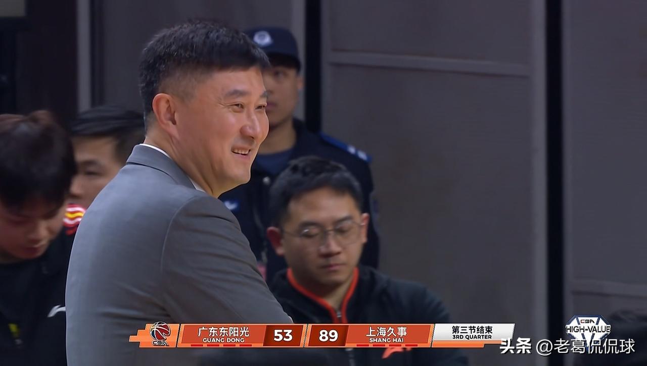 广东东阳光主帅杜峰真是太乐观了!在今天广东东阳光主场迎战上海久事的比赛中,当时广东东阳光以53:89落后对手结束了前三节的比赛。虽然广东东阳光大比分落后于对手,但是当转播镜头给到广东东阳光主帅杜峰时,只见杜峰教练面带微笑看起来非常乐观。此时此刻我想起了杜峰教练的一句名言“二十分算个屁呀”,我相信广东东阳光一定会在末节比赛中掀起反攻狂潮,从而实现一次超级逆转。