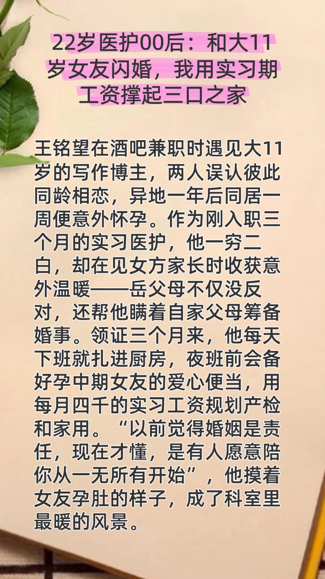 22岁医护00后:和大11岁女友闪婚,我用实习期工资撑起三口之家