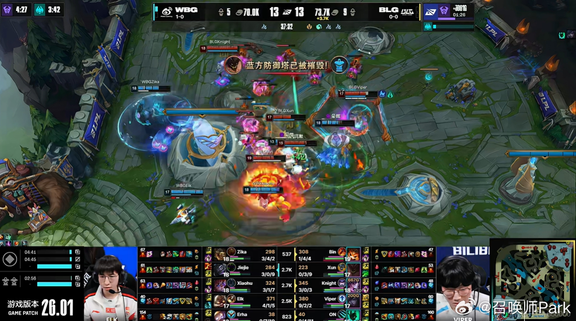 真的是反转再反转,BLG后期发力逆转战局,将WBG拖入决胜局,Viper这个厄斐琉斯小顶虽然空了几个大,但最后两波团打得挺好。BLG将WBG拖入决胜局呼吸哥有信心换掉BinViper与Elk交手记录