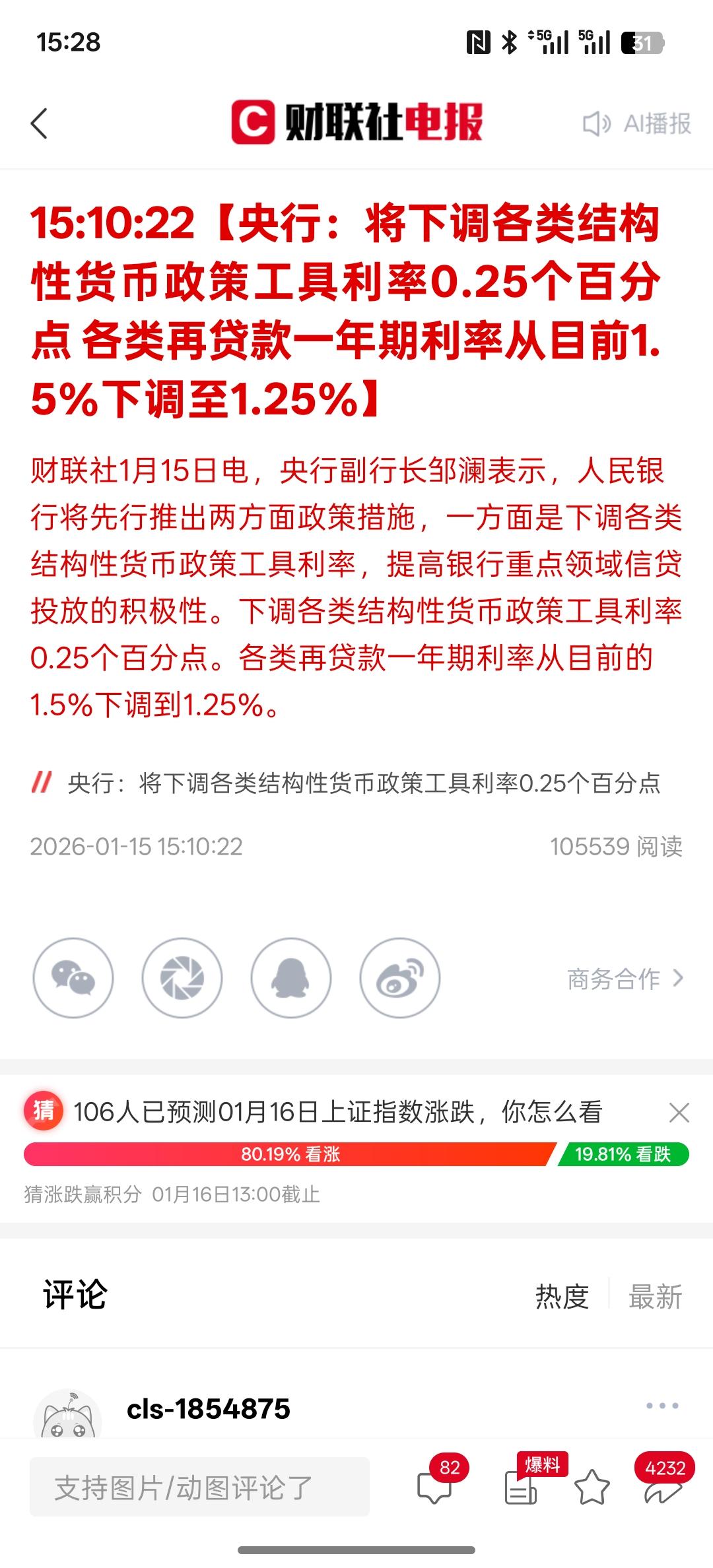央行:将下调各类结构性货币政策工具利率0.25个百分点 各类再贷款!这一次,央行直接释放了更多的流动性资金!这就是实质性的利好! 昨天盘中发利空,今天盘后发利好! 就看明天大盘能否继续上冲!但是要的是慢牛行情,肯定不能出现较大幅度的上涨!要是像疯牛一样的上涨,肯定会被按住! 这一次下调贷款利率,释放了更多的资金!央行将单投1万亿给民营企业贷款!