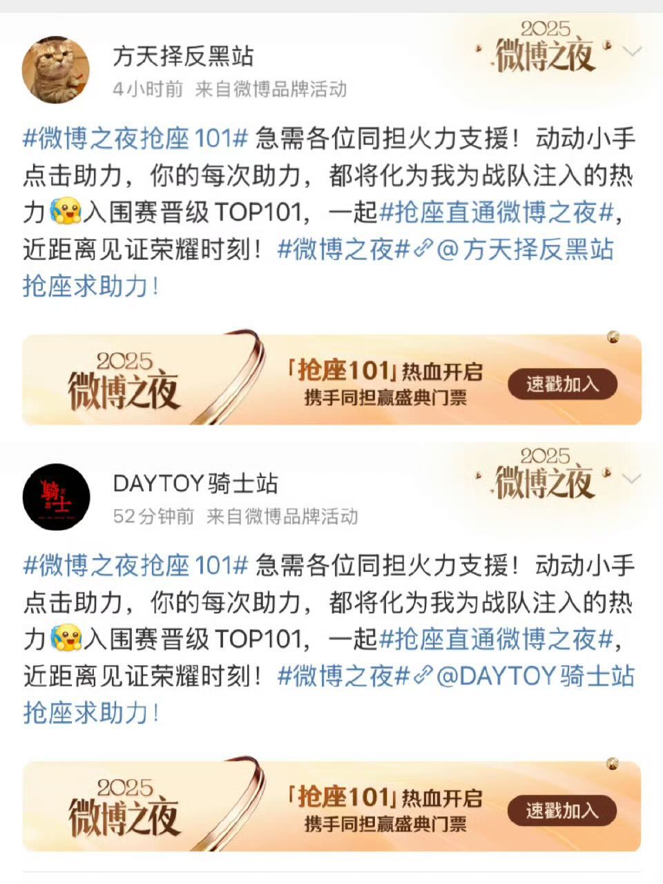 我在微博之夜抢座101 为助力成功!热力已注入战队池,各位同担快来接力,一起冲击