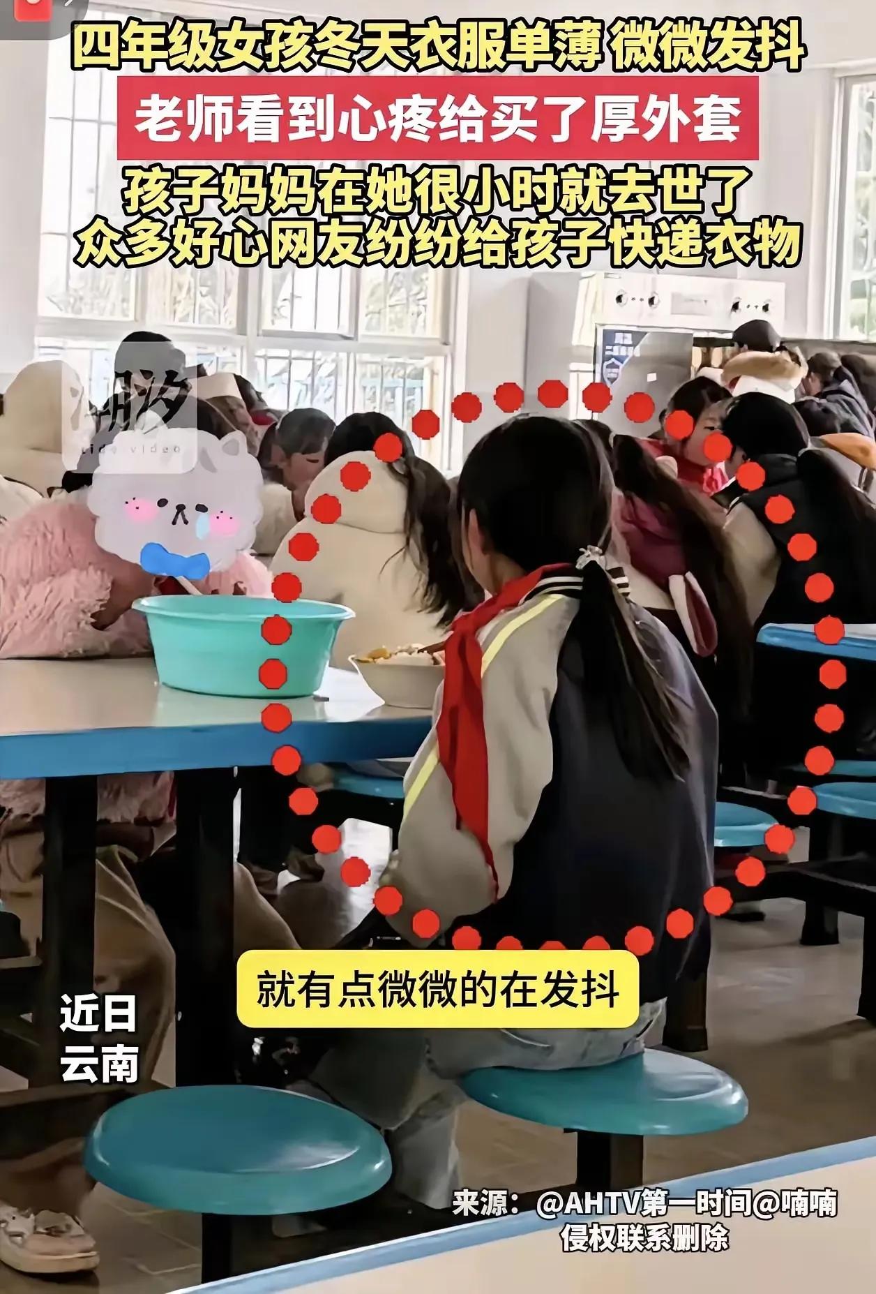 云南一月的寒风里,四年级女孩穿着单薄秋衣缩在食堂,冻得微微发抖的背影,戳中了英语老师的心疼。 一问才知女孩妈妈早逝,老师二话不说自掏腰包买厚外套,随手发上网记录日常,没想到竟掀起一场爱心接力。网友私信挤爆,衣服、围巾、鞋子、日用品源源不断寄来,还有人主动要资助女孩求学。老师干脆把多余物资分给班里其他困难同学,让温暖多份落点。 这哪是一件外套的小事?善良从来不是独角戏,而是你伸手、我跟进的连锁反应。那些总说世态炎凉的人,该看看这份普通人的善意有多滚烫。