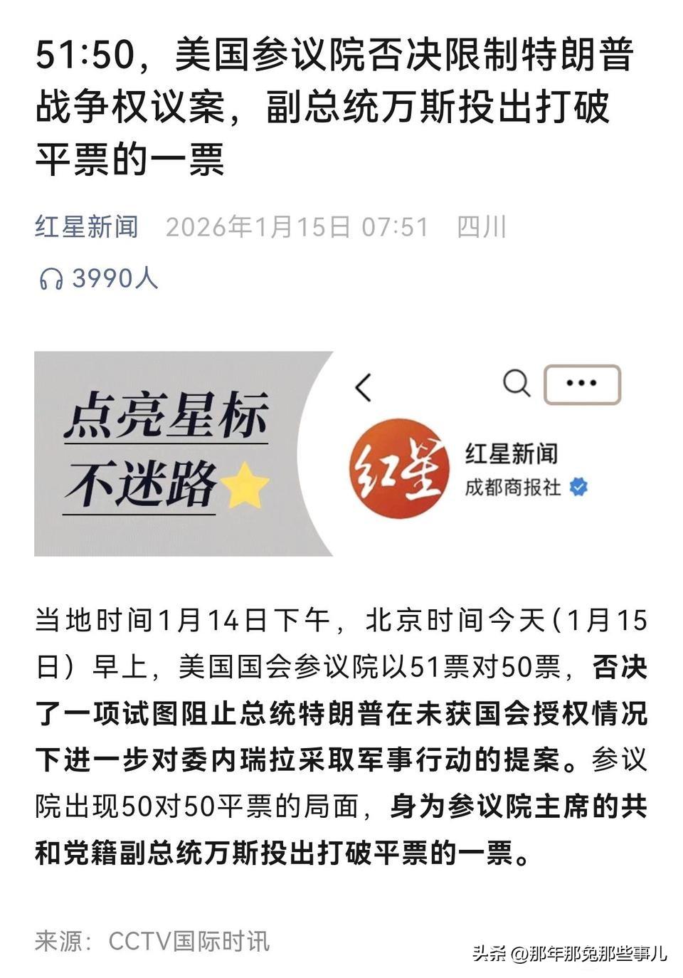 万斯不愧是参议院第一巴图鲁.. 美国参议院总共100人,每当投票50:50陷入僵局的时候由兼任参议院议长的副总统一锤定音,本来副总统是不投票的.. 这是不是已经是第三回发生这种事了,万斯一票决定走向... 卢比奥比起万斯来就像个小学生,他要学的还有很多...