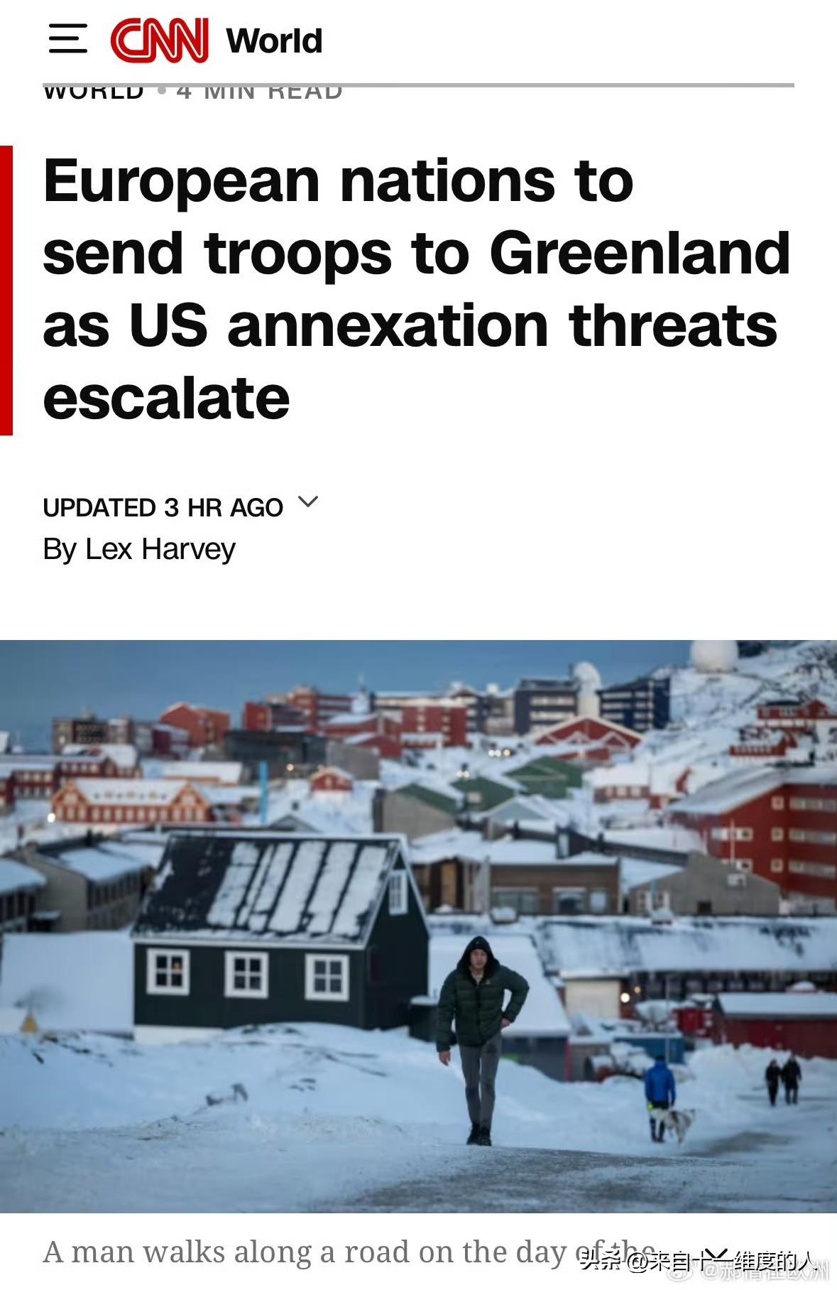 挪威、德国与法国都在往格陵兰岛派兵了。这事儿严肃了。 挪威排了两个人且是男女各一个人,德国派了一个13人先潜小队,法国派了…15人。 今天听到这些消息,觉得挺逗的,还真塞不满一辆校车[吐舌] 美国占格陵兰岛