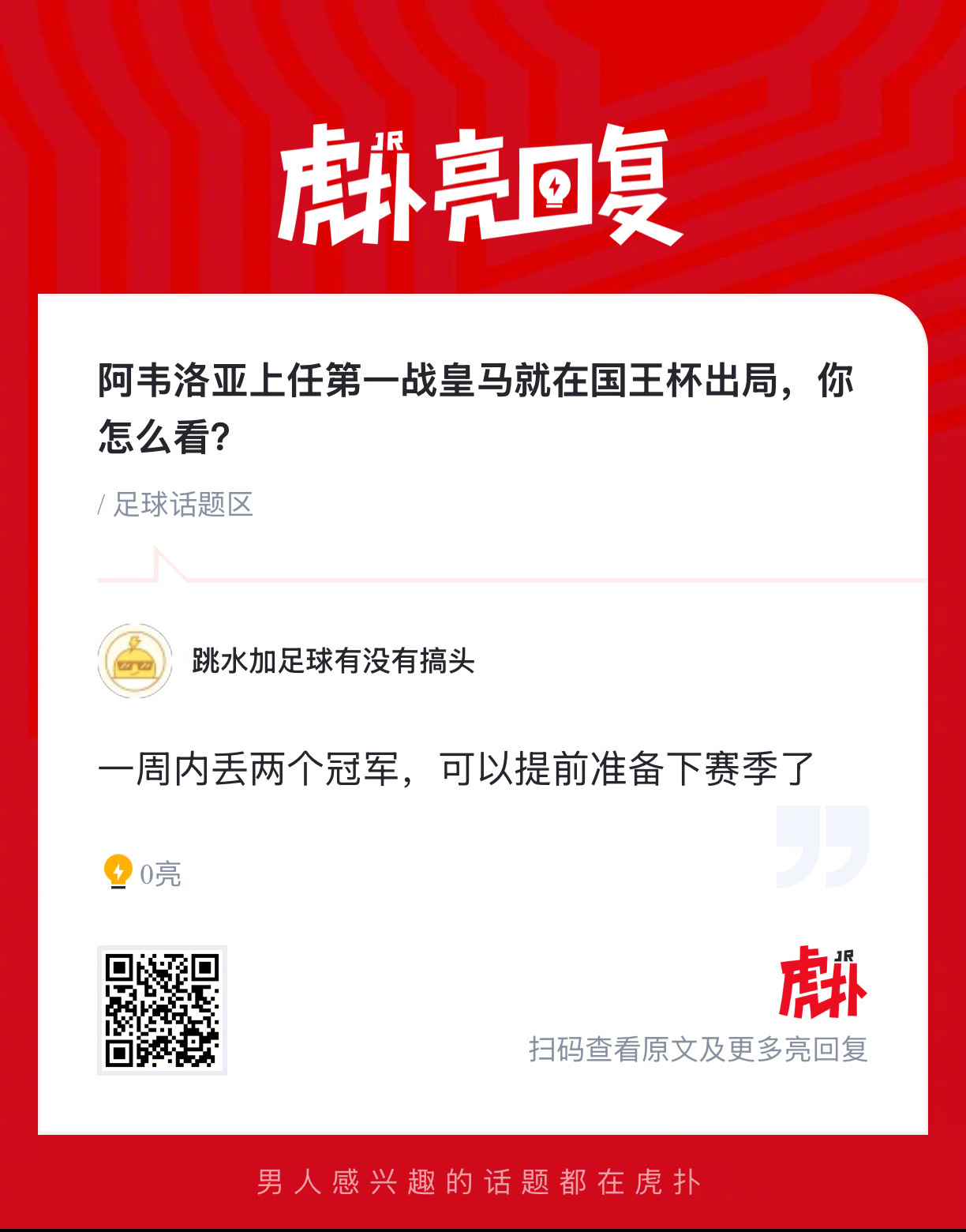 阿韦洛亚上任第一战皇马就在国王杯出局,你怎么看?