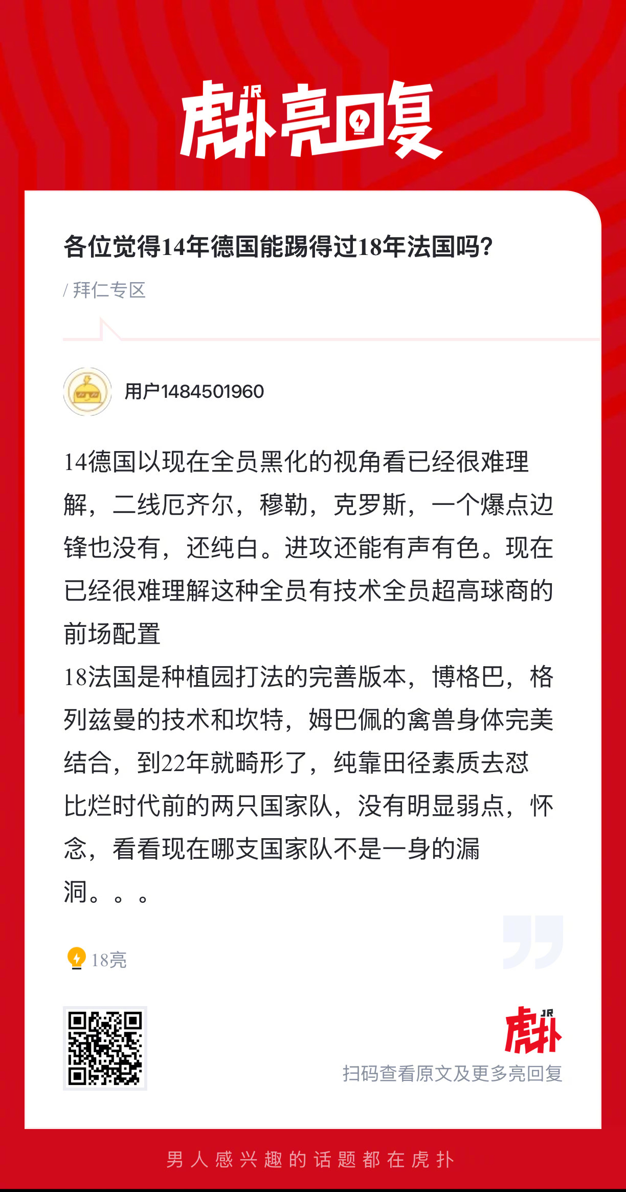 各位觉得14年德国能踢得过18年法国吗?