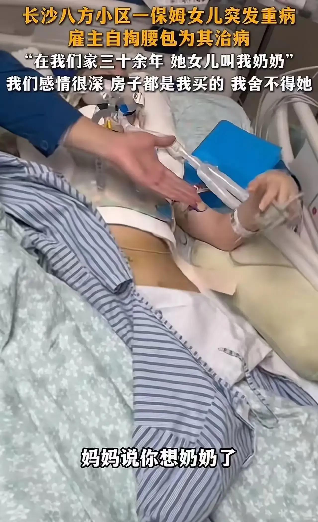 都说“人间自有真情在”,可你见过雇主为保姆女儿慷慨解囊,甚至不惜拿出全部积蓄的吗?近日,长沙一位雇主吕阿姨的做法,就让全网为之动容! 原来,吕阿姨家的保姆,其18岁的女儿不幸患上重病,面对高额的医疗费用,保姆一度想要放弃治疗。吕阿姨得知后,毫不犹豫地站了出来,她直接放话:“你要是敢不救,我就把你赶出去!”这霸气的话语背后,是吕阿姨对保姆一家深深的关爱。更令人震惊的是,吕阿姨竟然翻出了自己一辈子攒下的积蓄,整整30多万,毫不犹豫地拿了出来,连眉头都没皱一下。她表示,这些钱原本是打算养老用的,但现在孩子治病要紧,钱没了可以再赚,但孩子的命没了就什么都没了。吕阿姨的善举,不仅让保姆一家感动得热泪盈眶,更让无数网友为之点赞。大家纷纷表示,这已经不仅仅是善良两个字能表达的人品了,吕阿姨简直就是“活菩萨”在世! 吕阿姨用实际行动诠释了什么是真正的善良和大爱,她的善举值得我们每一个人去学习和点赞。对于这件事,你有什么看法呢?快来评论区留言,一起分享你的观点吧!保姆感悟 辛酸保姆故事 养女感动了老人