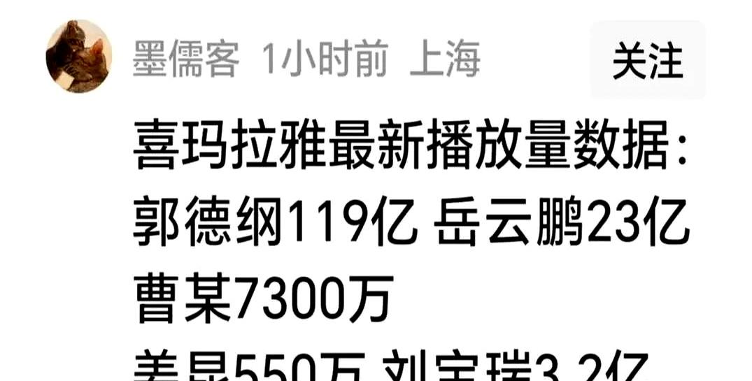 喜马拉雅把数字甩脸上。 郭德纲119亿次播放,岳云鹏23亿,合起来顶好几个省人口。 数据不会撒谎,耳朵投票最诚实。 有人嫌德云社俗,可曲艺赛道千亿次播放里他们占大头,去非洲巡演南非观众都跟着喊“咦”,你说气不气。 不爱听? 可以。 只是划拉半天,榜单前几还是他们。 想换口味,得先找得到播放量过十亿的替代品。 找不到? 那就别怪平台继续推。 市场就这规矩,先让人笑,再让人掏钱。能卖票、能出海、能霸榜,这就叫本事。