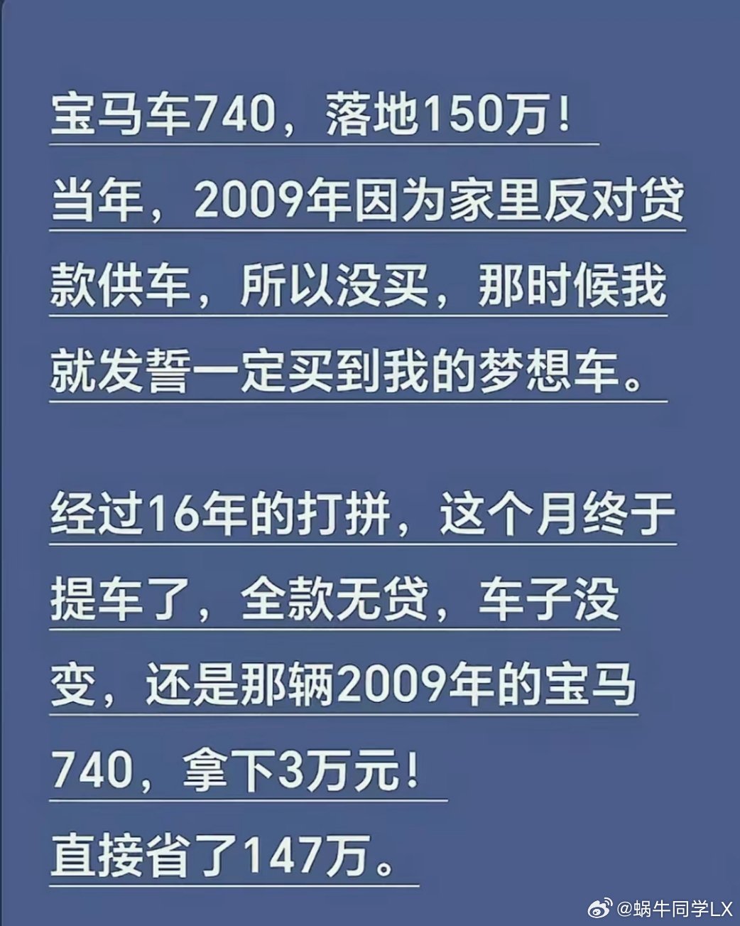 全款拿下宝马740,太励志了!话说回来,这不比挣147万容易多了吗!