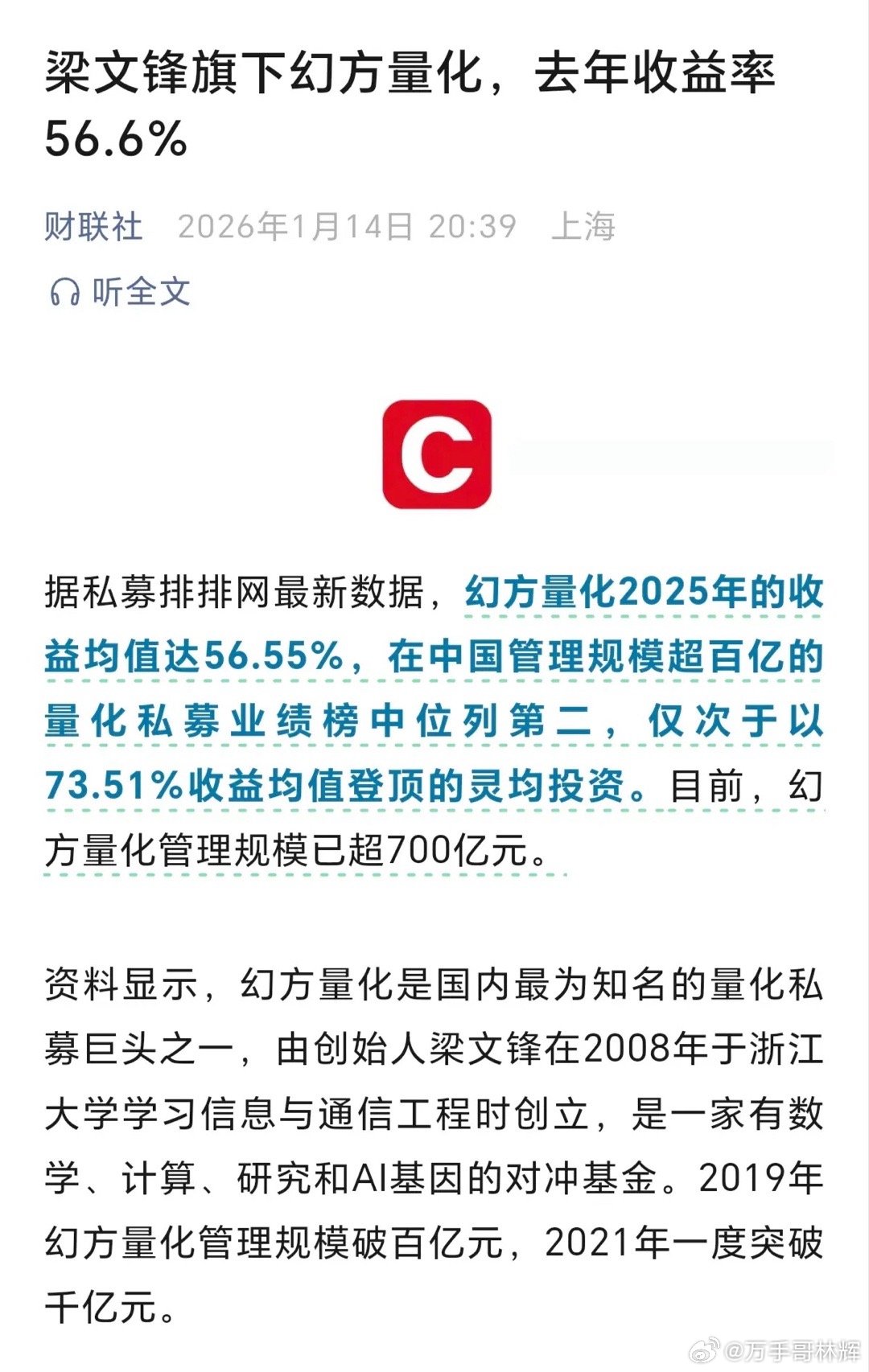 幻方量化既然这么赚钱,2025年的收益率既然高达56.55%,不过也正常,现在的量化在Ai数据算法的加持下,以及每秒299笔和融券T+0的特权优势下,基本上可以在A股横着走。