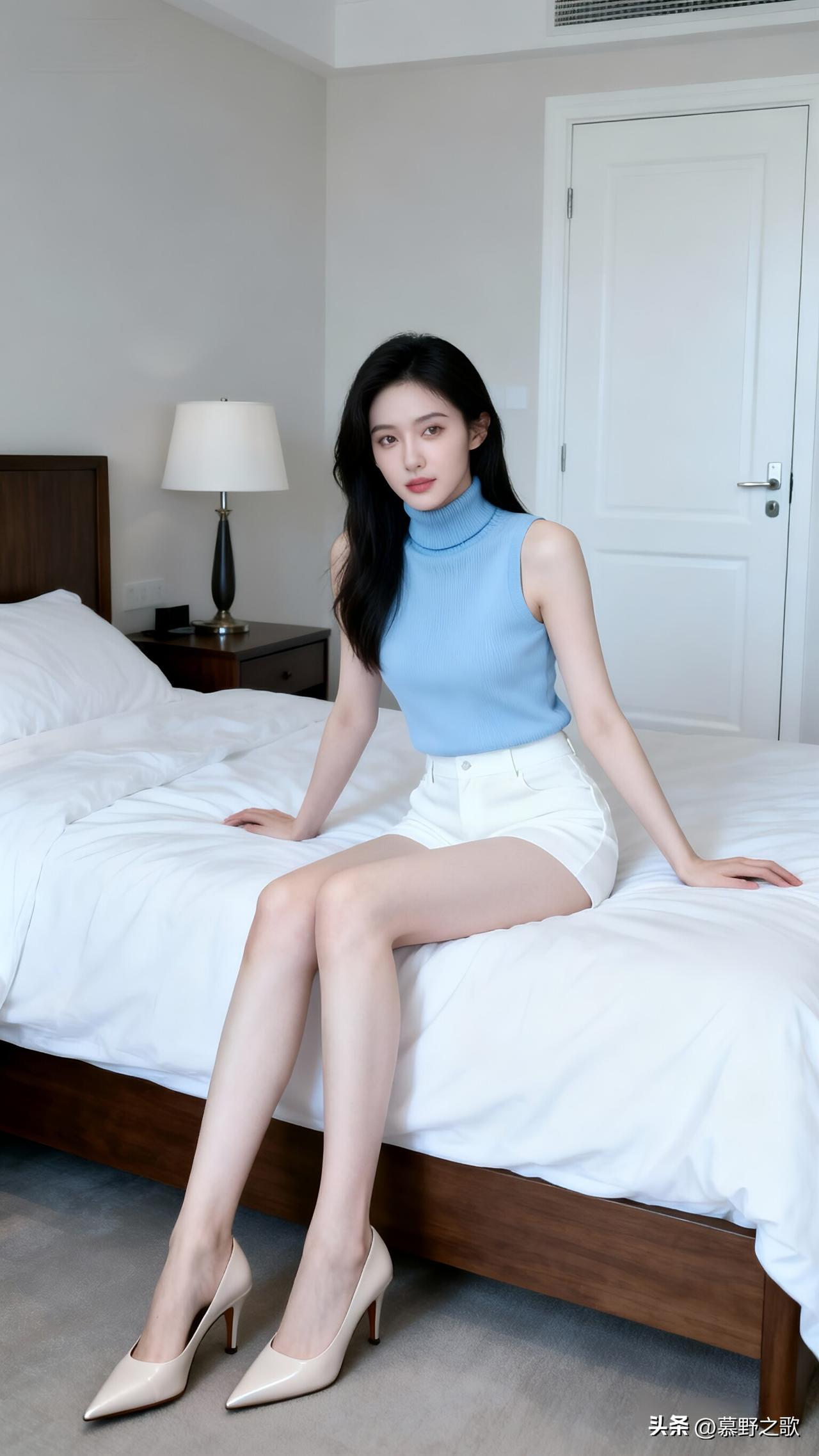 蓝白配穿出纯欲天花板!无袖针织衫搭白短裤,这身材比例太绝了 谁能拒绝蓝白配色的清新纯欲风暴击?画面中的女子身着天蓝色无袖高领针织衫,搭配白色高腰短裤,在简约的卧室场景中,将极致的身材比例展现得淋漓尽致。 无袖针织衫勾勒出饱满的上围与纤细的肩颈线条,冷白皮在柔和的室内光线下更显莹润,白色高腰短裤拉长了腿部比例,让双腿看起来笔直又修长,裸色高跟鞋的搭配更添优雅气质。她坐在床沿的姿势自然又慵懒,眉眼间的清冷与身姿的曼妙碰撞,将蓝白配的清新感与身材的美感融合得恰到好处。 这组日常随拍没有刻意的摆拍,却把基础款穿搭的高级感展现得毫无保留。你觉得蓝白配穿搭最适合搭配什么妆容? 蓝白配穿搭 纯欲风 冷白皮美女 极致身材比例