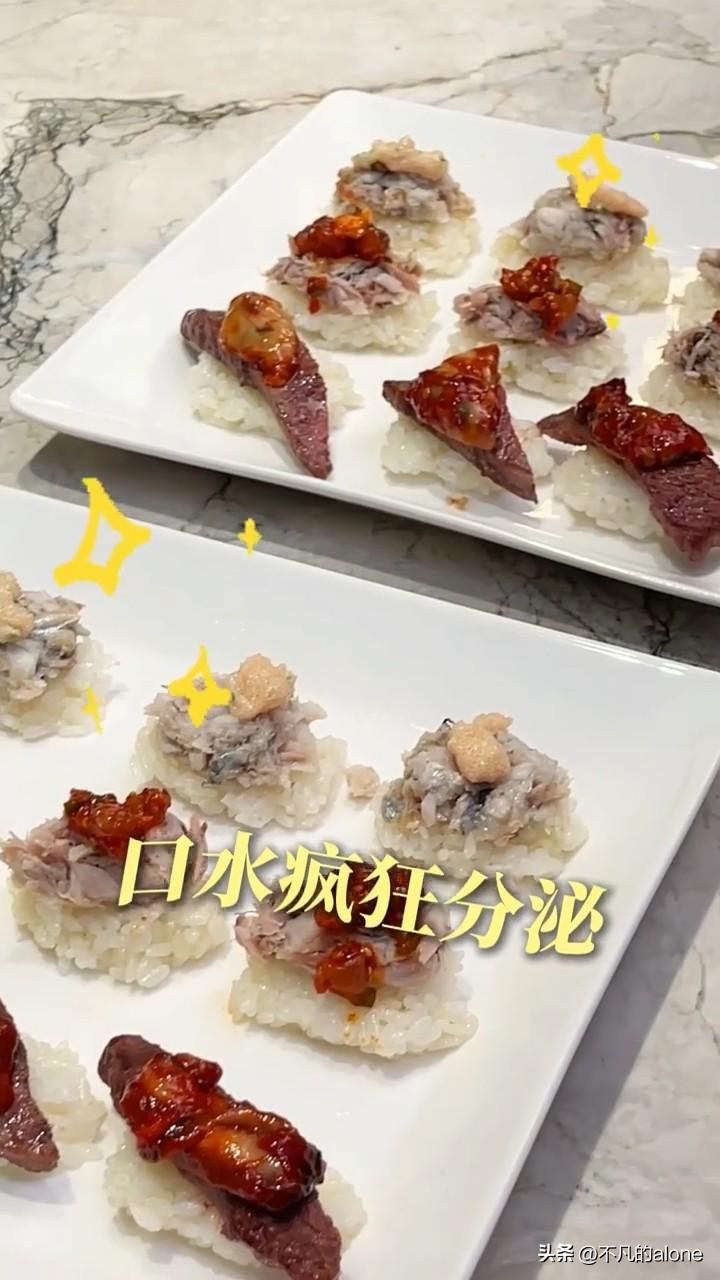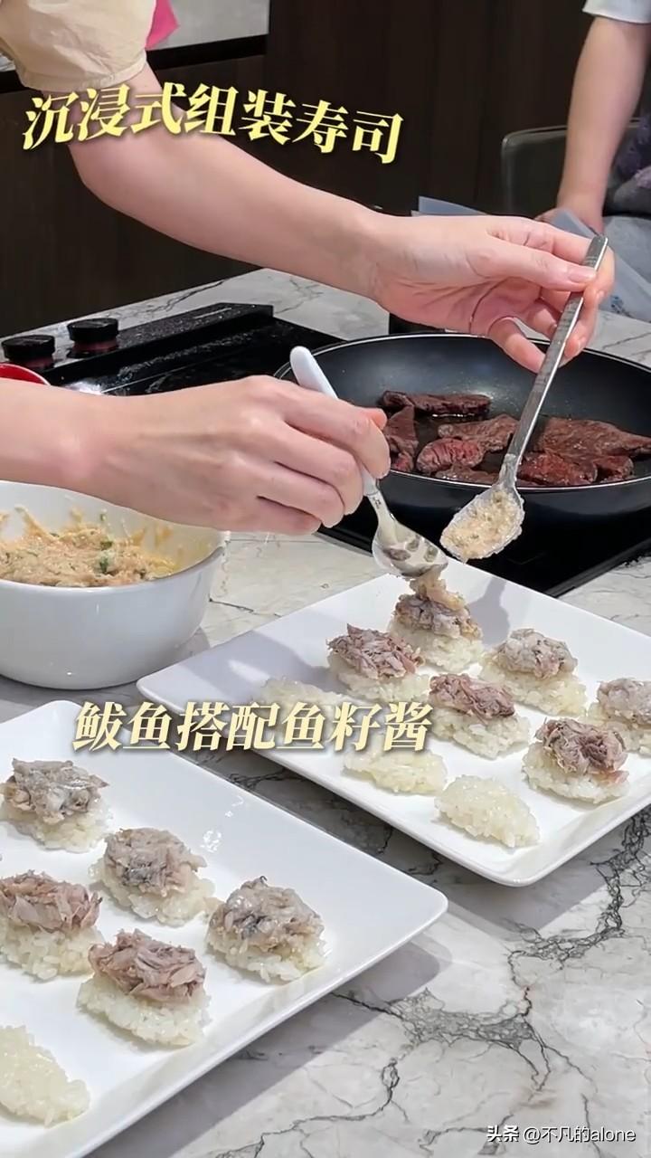 1月15日,秋瓷炫更新美食vlog,这次她做的是“寿司”,大家吃得惯吗? 秋瓷炫先把鲅鱼肉、牛肉以及带鱼肉煎熟,并将鲅鱼、带鱼的骨头和刺挑出来,把肉弄成碎末,她太有耐心了。 秋瓷炫还准备了腌制过的八爪鱼和鱼籽,以上两种鱼都是生的。 于晓光本来是准备帮忙的,他需要把八爪鱼剪成细丁。但他做事太马虎,被秋瓷炫姐姐嫌弃了,哈哈哈。 最后,秋瓷炫做了三种口味的寿司。一是鲅鱼搭配鱼籽酱;二是带鱼搭配八爪鱼酱;三是牛肉搭配生蚝酱。 秋瓷炫在做寿司过程中,老公和儿子在一旁嬉笑打闹,一家人真的太幸福了,大家觉得呢?
