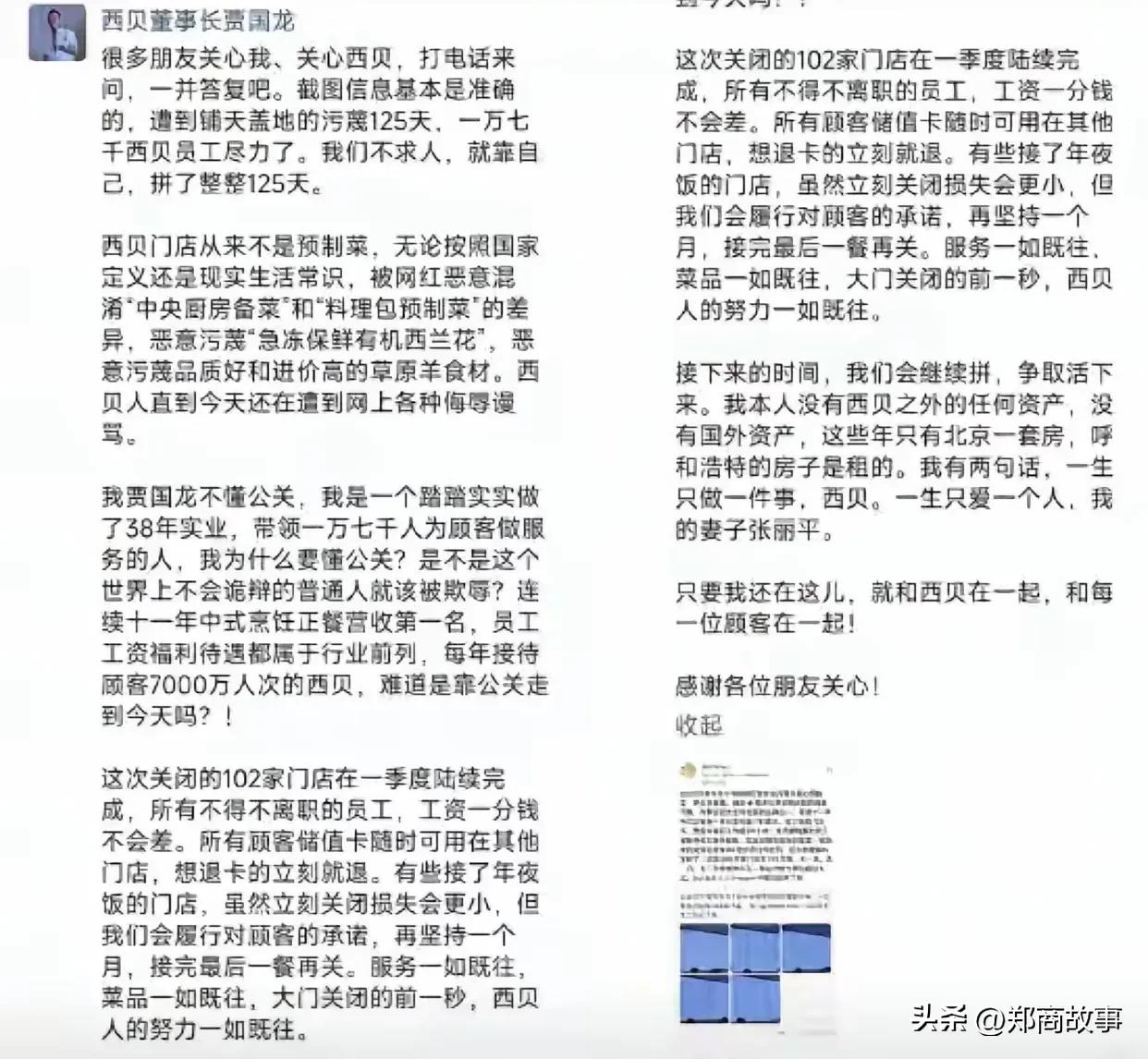 贾国龙和华与华搭建的是一种餐饮行业文化。 参与他们这个体系的老板和商业运营公司非常多。 迄今为止,国内还有很多营销策划公司,把华与华的特殊符号和国外的定位理论商品化售卖,走得还是卖点子路线。 吃这碗饭的人要多了,很难掉头。 贾老板实体生意做大了,其实有时候也很羡慕脑子灵活的白手起家卖方案的营销模式,他也不由自主的想转型做IP和价值观经营理念输出。 事实证明,做IP的争夺的是在粉丝群体的话语权,不可避免的要做好激烈矛盾冲突和网络对线的准备。 老贾没看懂,不同赛道上的选择,首先要看看自己的对手,线下餐饮他没有对手,但是网上对线,他在错误的时机选择了错误的方式。 我百分百相信华杉哭着劝过他,毕竟是给他带来上亿利润的大统领。 值得他站出来分散火力。 但是他们错误低估了人性,高估了自己。 华与华商誉损失至少过亿,可能以后不会有企业相信低俗简单直白的超级符号理论了,贾国龙的货真价实的西北菜,只存在国内消费者记忆中和身在国外的华人西贝粉丝中了。 毕竟在国外的西贝,还是没有预制菜的。 就凭这一点,老贾不说是坏,也很难洗白。