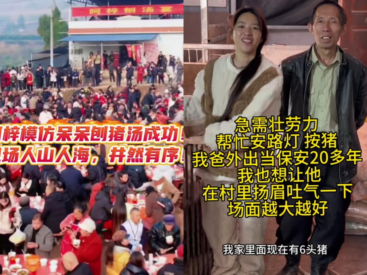 不得了!刨猪宴多地开始复刻! 看了下,其中复刻最成功的,当属四川南充的网红阿梓。
