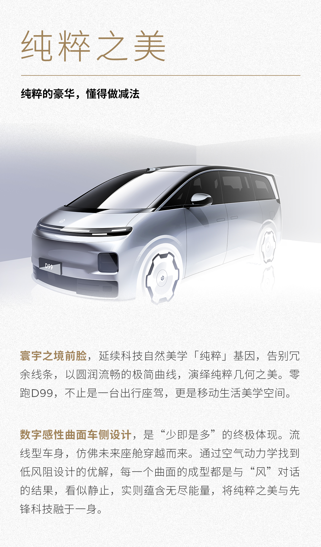 ✨设计是无声的语言,但总有人懂✏️当第一笔曲线划过纸面,零跑D99的故事由此开启💞零跑D99 用流线还原MPV本质在「大空间」与「低风阻」之间取得平衡🚗以优雅设计,诠释新时代零跑旗舰风范👇🏻戳大图,看零跑D99如何重塑豪华MPV定义