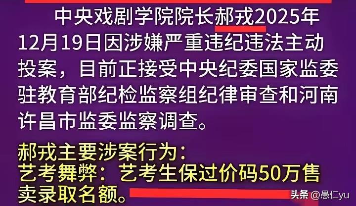 中戏院长郝戎被查后坦白,他2011年当系主任时就开始对艺考生保过明码实价,从20万到50万,而且年年涨价,因为需求大! 这样的事,严重破坏教育公平,可以使水平低的花钱保过,自然就挤了没钱的好学生。更可怕的是,在学生脑子埋炸弹,干什么都需要钱,没钱不好使,有了钱就可以为所欲为,甚至胡作非为!他们从当中戏学生开始就知道有钱就可以霸道! 本为人师,却打起了学生的歪主意,理应重罚,接着深挖! 中戏院长郝戎 中戏导演系考研 中戏郝戎 中戏导演学院