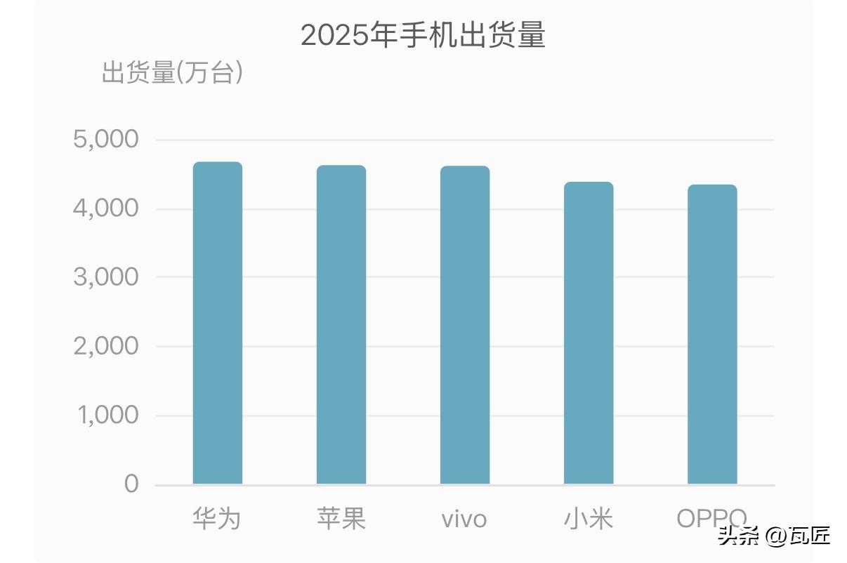 华为王者归来:2025中国手机市场登顶 根据IDC最新发布的《全球季度手机跟踪报告》,2025年中国智能手机市场出货量约2.85亿台,同比下降0.6%。在存量竞争的红海市场中,华为以4670万台出货量、16.4%市场份额重新登顶,这是自2020年后首次重回榜首。 值得注意的是,前五名厂商差距极小:苹果与vivo分别以4620万和4610万台紧随其后,市场份额均为16.2%;小米和OPPO则以4380万和4340万台位列四五位 。 手机销量排行 未来的华为手机 2025手机 全球手机普及率 手机未来的发展 手机2025 中国手机市场