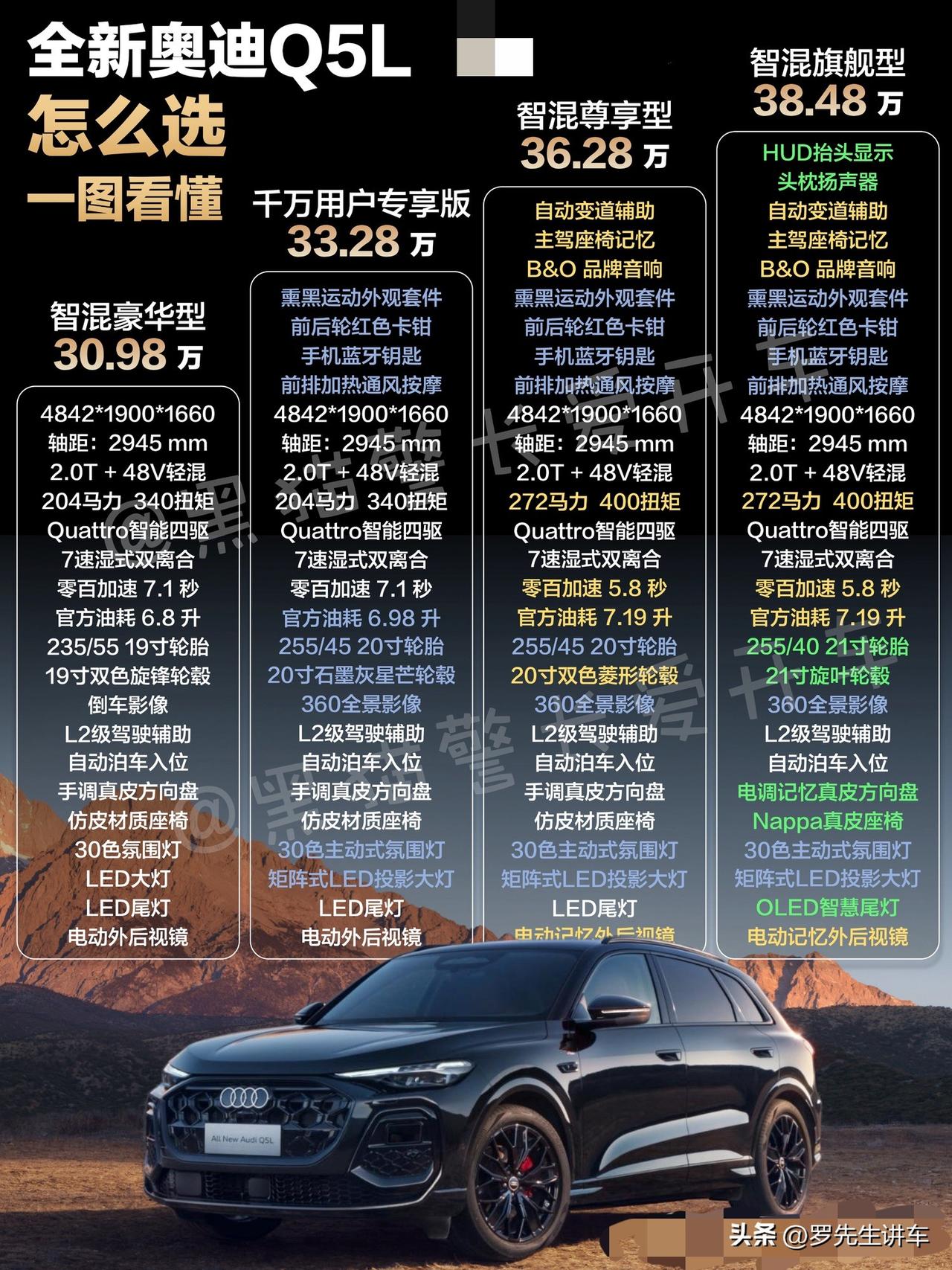 一分钟看懂 | 全新换代Q5L怎么选❓终于,全新Q5L换代配置和正式价格都在今天尘埃落定了,你们觉得这个配置和价格怎么样❓