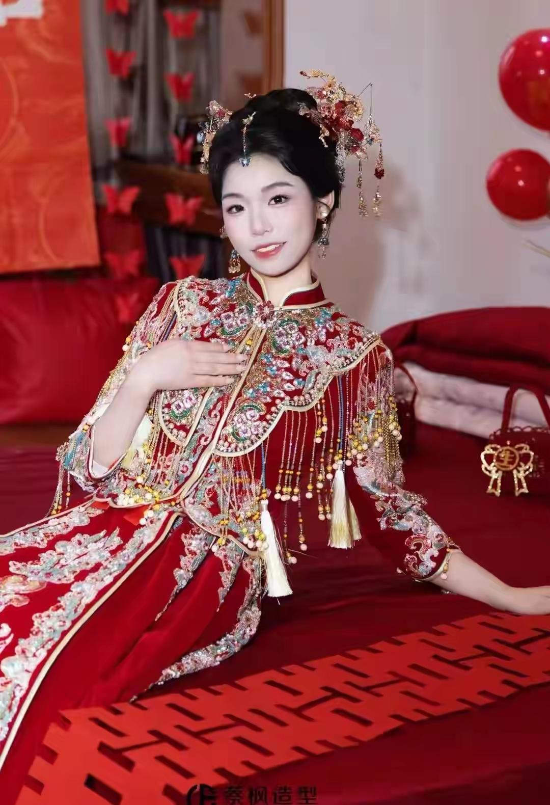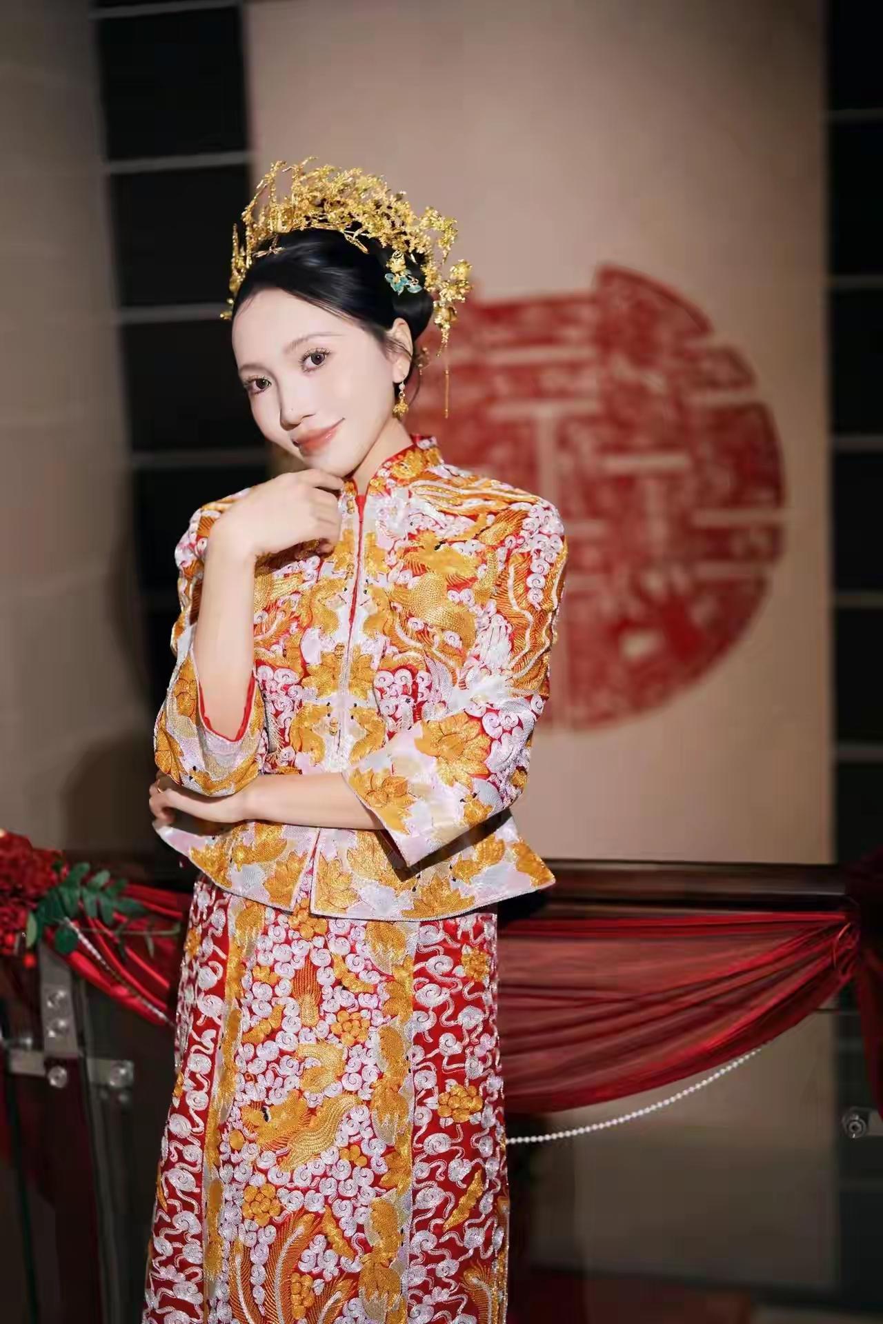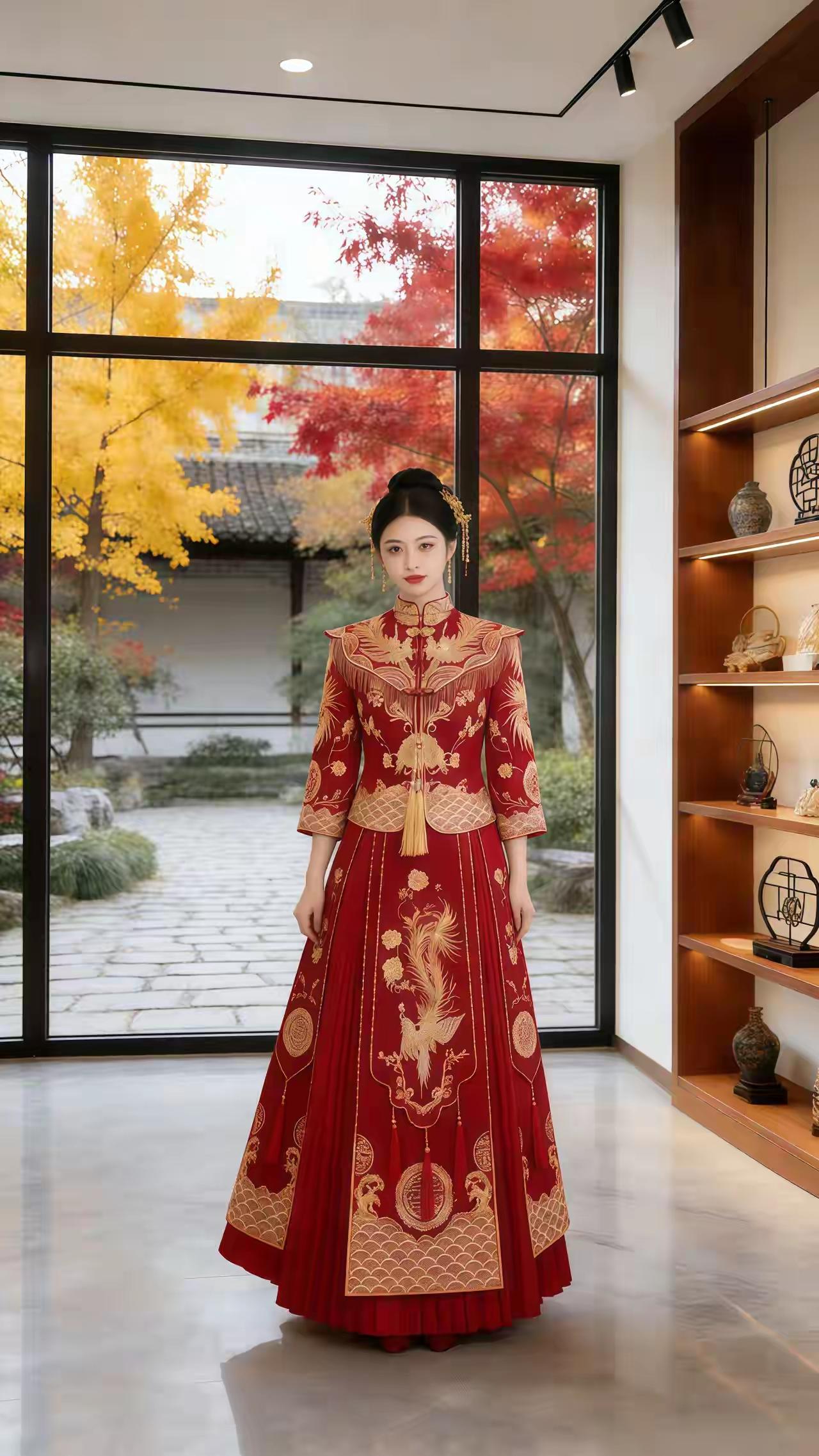 谁能想到粉蕾丝鱼尾裙与柿子树的同框会这么惊艳?木质调的室内空间里,女神身着粉色蕾