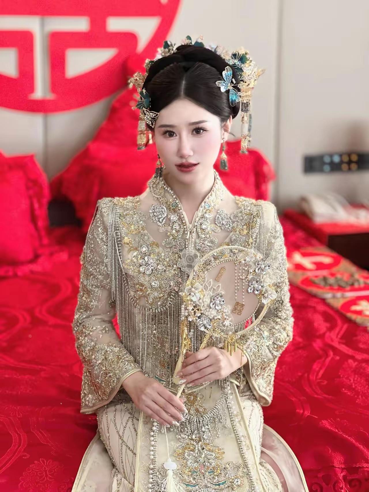 气质穿搭怎么穿才恰到好处?浅香槟色的挂脖礼服,上身缀满碎钻与闪片,在灯光下折射