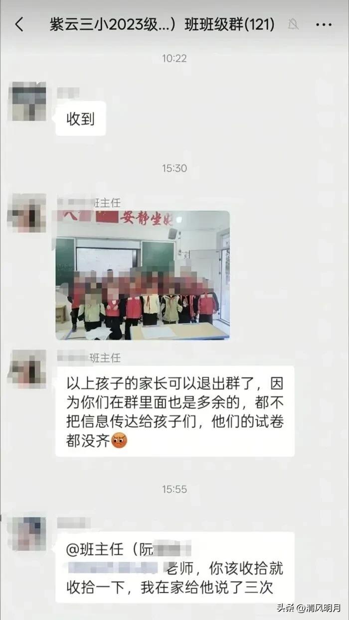 近日,有网友在社交平台发布一张班级微信群聊天截图称,贵州省安顺市紫云自治县第三小学某班主任阮某某,在班级微信群晒出10多名未交齐试卷的学生照片。该老师称上述学生家长在群里“多余”,可以退群了,此事引发关注。 这不仅仅是一张微信群截图,更像是一面折射出教育生态的镜子。一个老师的“公开点名”,引发了社会对“尊重与隐私”的热烈讨论。试想,一个班级的微信群,原本应是沟通、鼓励和共同成长的场所,却变成了“曝光台”。学生的照片、家长的反应、老师的语气,一幕幕展现出教育中的“焦虑”与“压力”。 这位老师的行为,究竟反映了什么?是管理上的失衡,还是教育观念的落后?更深层次的问题或许在于:在快节奏、压力巨大的现代教育环境中,老师们是否迷失了“温度”?学生的隐私和尊严,是否被忽略了?而家长的“多余”,是否也折射出某种“无奈”——对教育的焦虑、对孩子的担心,却在沟通中变成了“标签”。 我们必须清醒看到,教育不应成为“羞辱”的舞台,而应是激发潜能、传递温暖的港湾。这个事件,或许是一个警钟,提醒我们每一个教育工作者:在追求成绩的同时,更要守住“人性”的底线。家长和社会也应反思:我们期待的教育,是严厉的“铁血”,还是充满理解和尊重的“阳光”?只有共同努力,才能让每一个孩子在温暖中成长,在尊重中绽放。 这场风波,或许会成为推动教育反思的契机。毕竟,真正的教育,是用心去看待每一个学生,用温暖去照亮他们的未来。