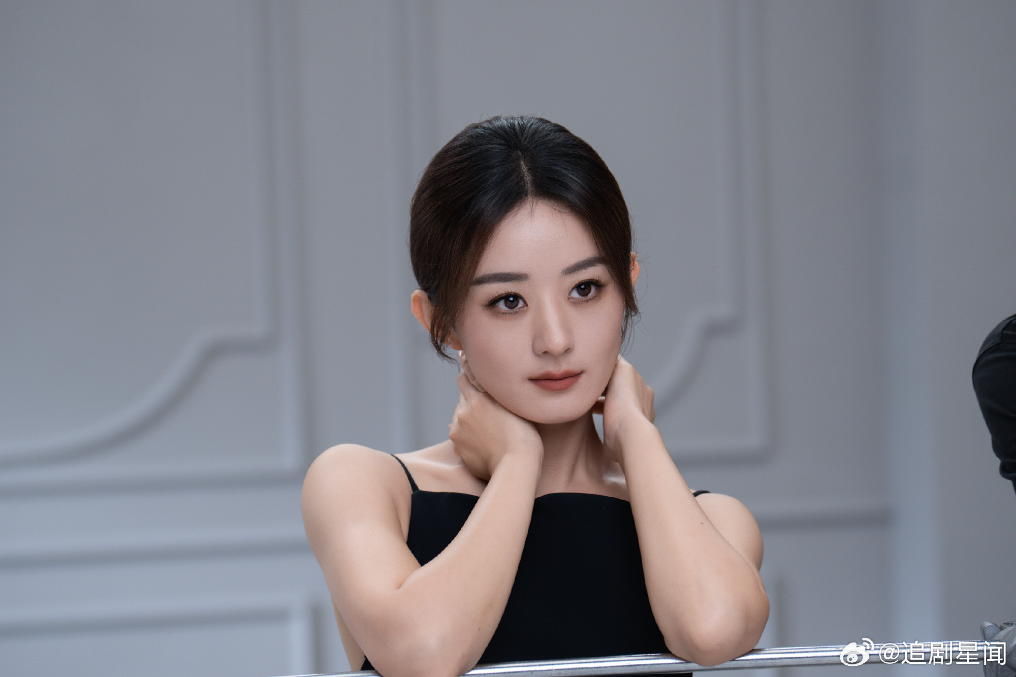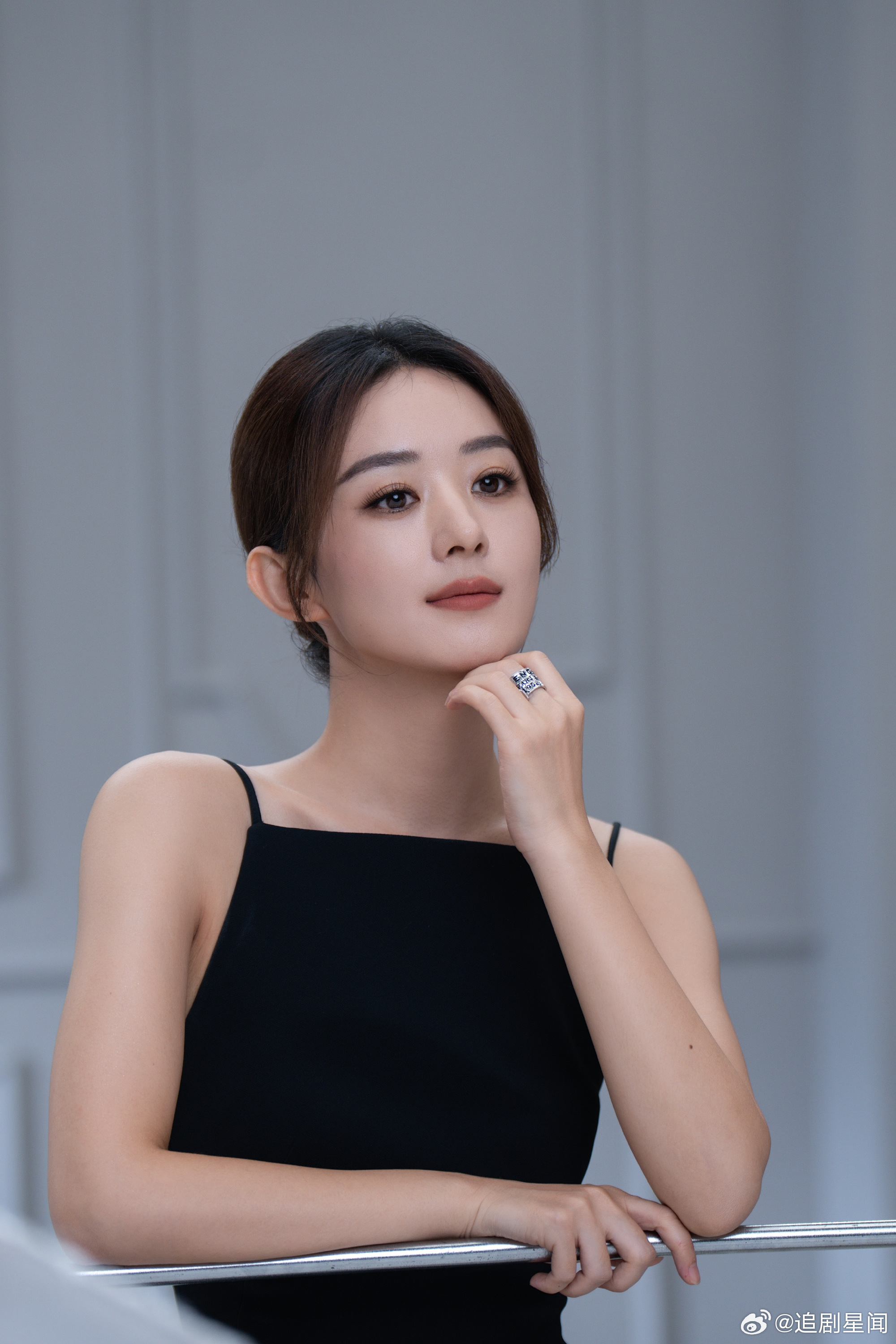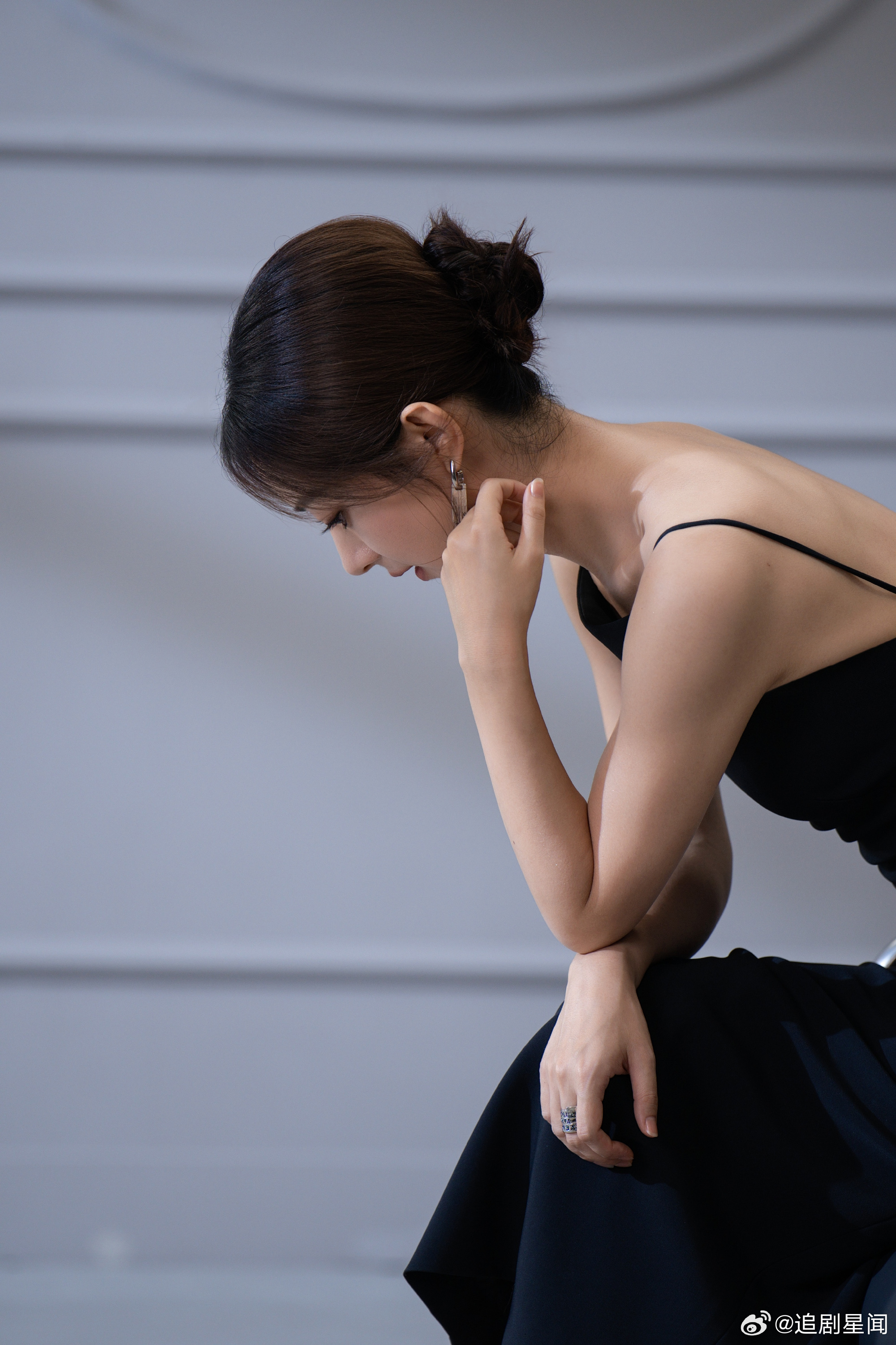 赵丽颖黑色吊带造型氛围感拉满!侧颜精致线条优越,这状态也太能打了吧。赵丽颖