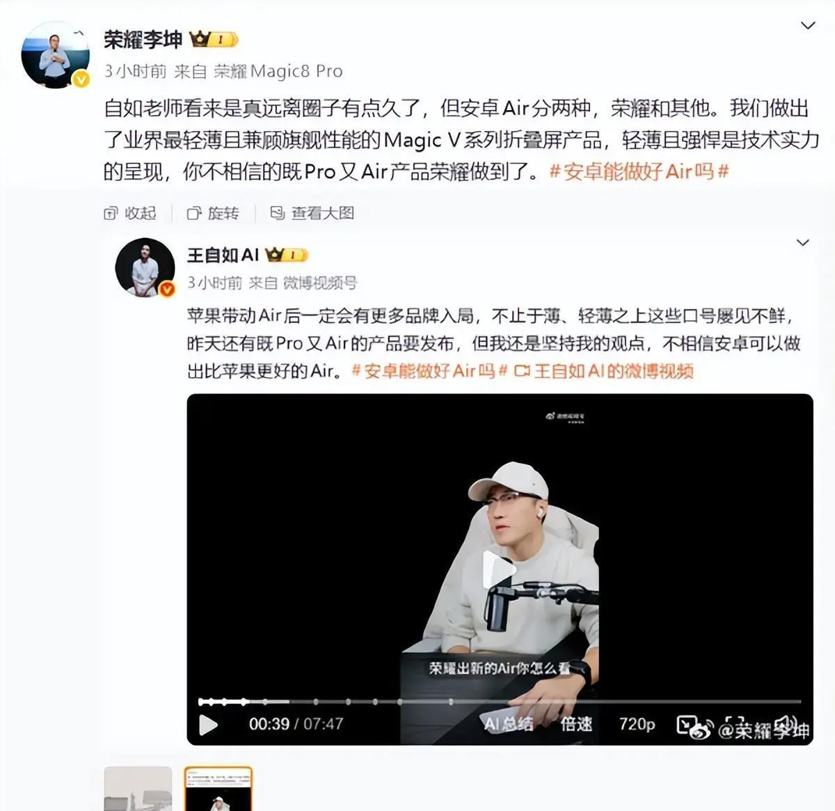 荣耀1月19日推出新旗舰Magic8 Pro Air,号称“轻薄不妥协”,用6.1mm厚度和155g重量塞进顶级芯片、大电池和三摄系统,挑战苹果iPhone 17 Air的失败教训。去年,苹果的iPhone 17 Air以5.6mm超薄卖点,却因续航和相机弱点,首销周激活量仅5万台(参考iPhone mini系列销量低迷数据),让用户失望。 相比之下,荣耀靠系统创新打破行业魔咒,提供全能体验。这反映国产手机在激烈竞争中崛起,技术整合能力强,能满足用户“样样都要”的需求。数据显示,2023年国产高端手机市场份额持续增长,荣耀等品牌在轻薄旗舰上表现突出,逼迫苹果反思创新模式。 我的观点是,国产手机正以工程实力和用户导向,推动行业进步。别再纠结苹果 vs. 安卓,这场较量将带来更完美的手机选择——轻薄却不牺牲性能,值得期待!!!