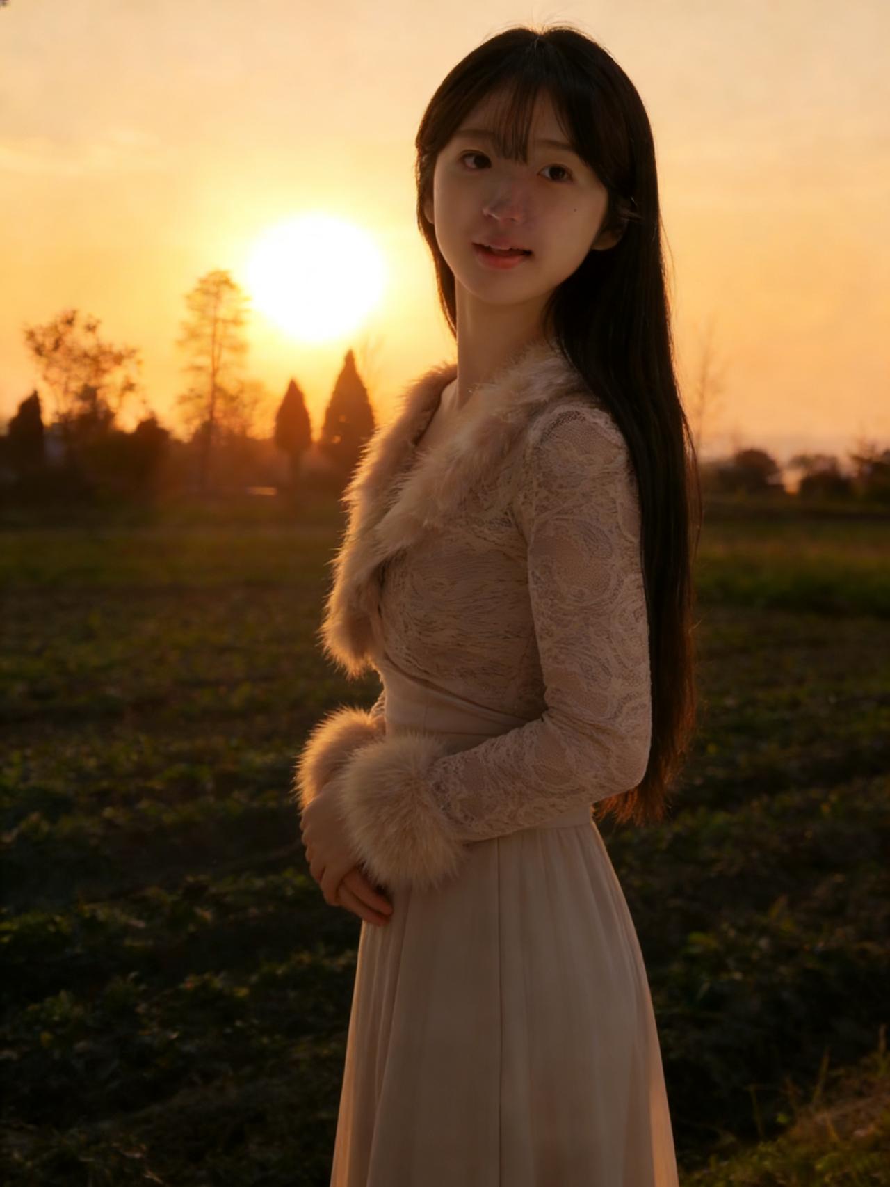 溪光如练, 照见佳人面。 粉裙微动风前燕, 长发垂肩如霰。 ~ 落日欲下西山, 秋声暗入林间。 一笑嫣然回首, 人间胜似春还。