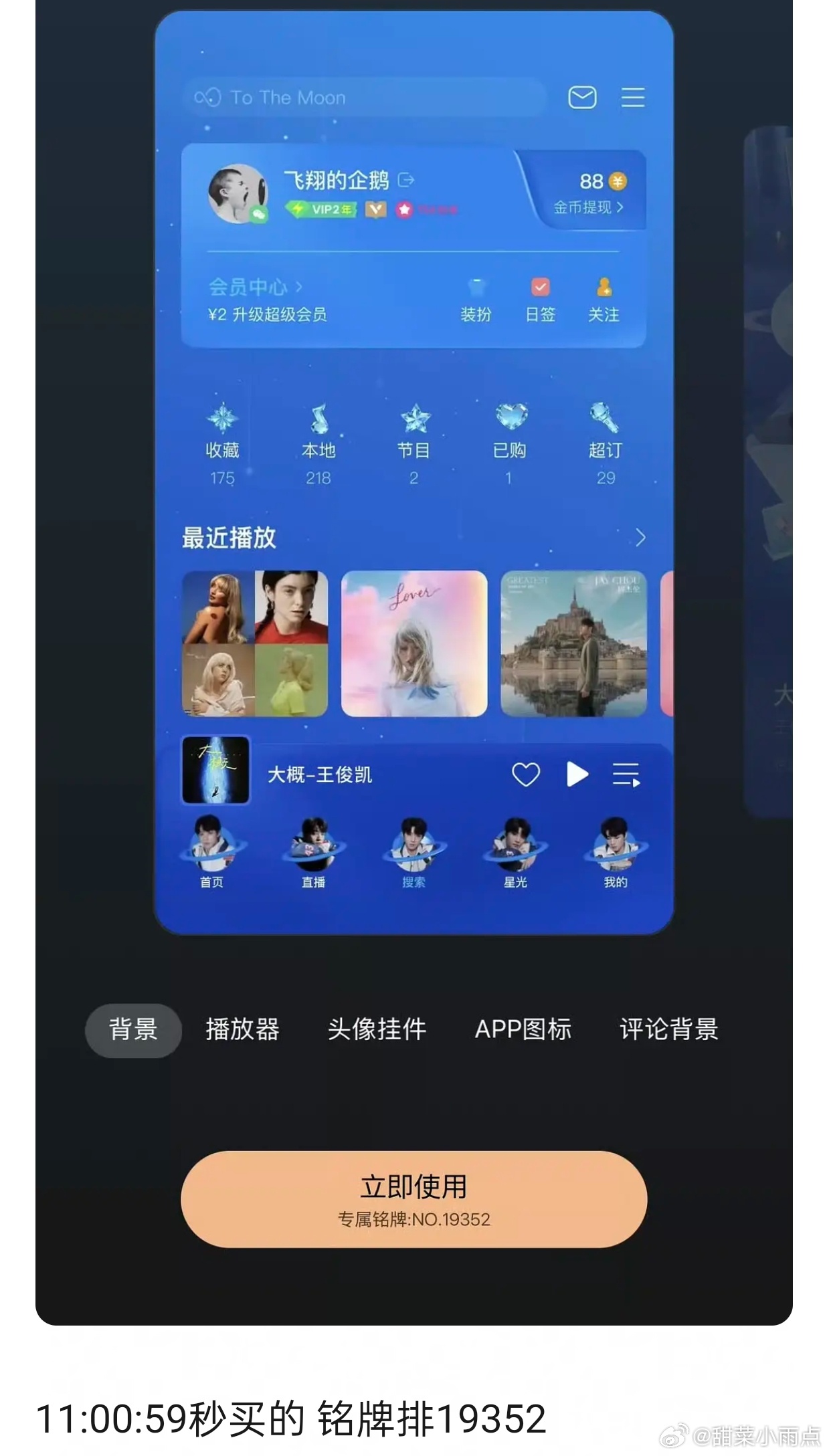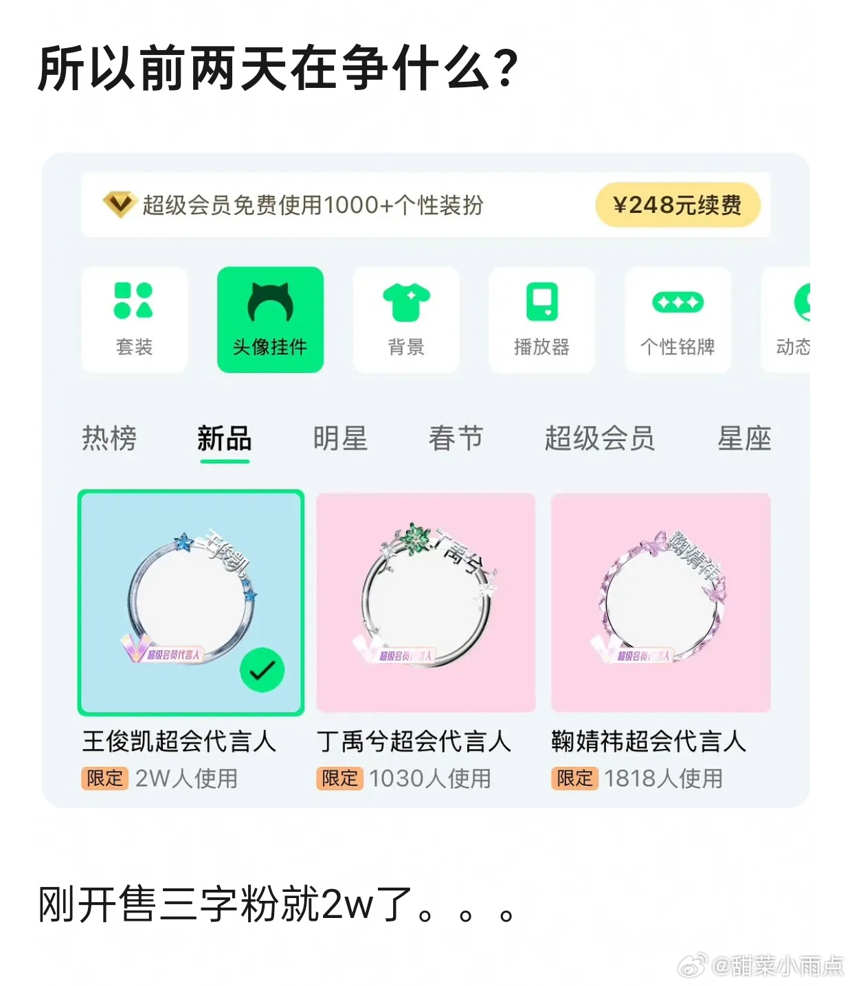 王俊凯、丁禹兮前几天QQ音乐kp,老流量🆚新流量,但是他俩完全都不是一个类型的,也不知道谁家主动交流的…今天代言人限定装扮,王俊凯家直接秒了