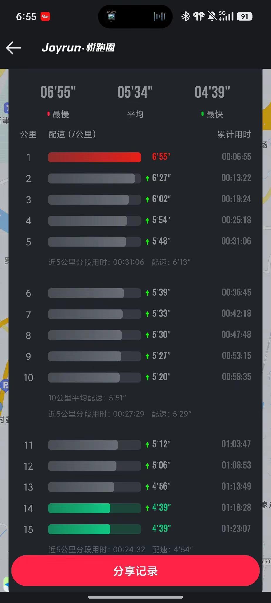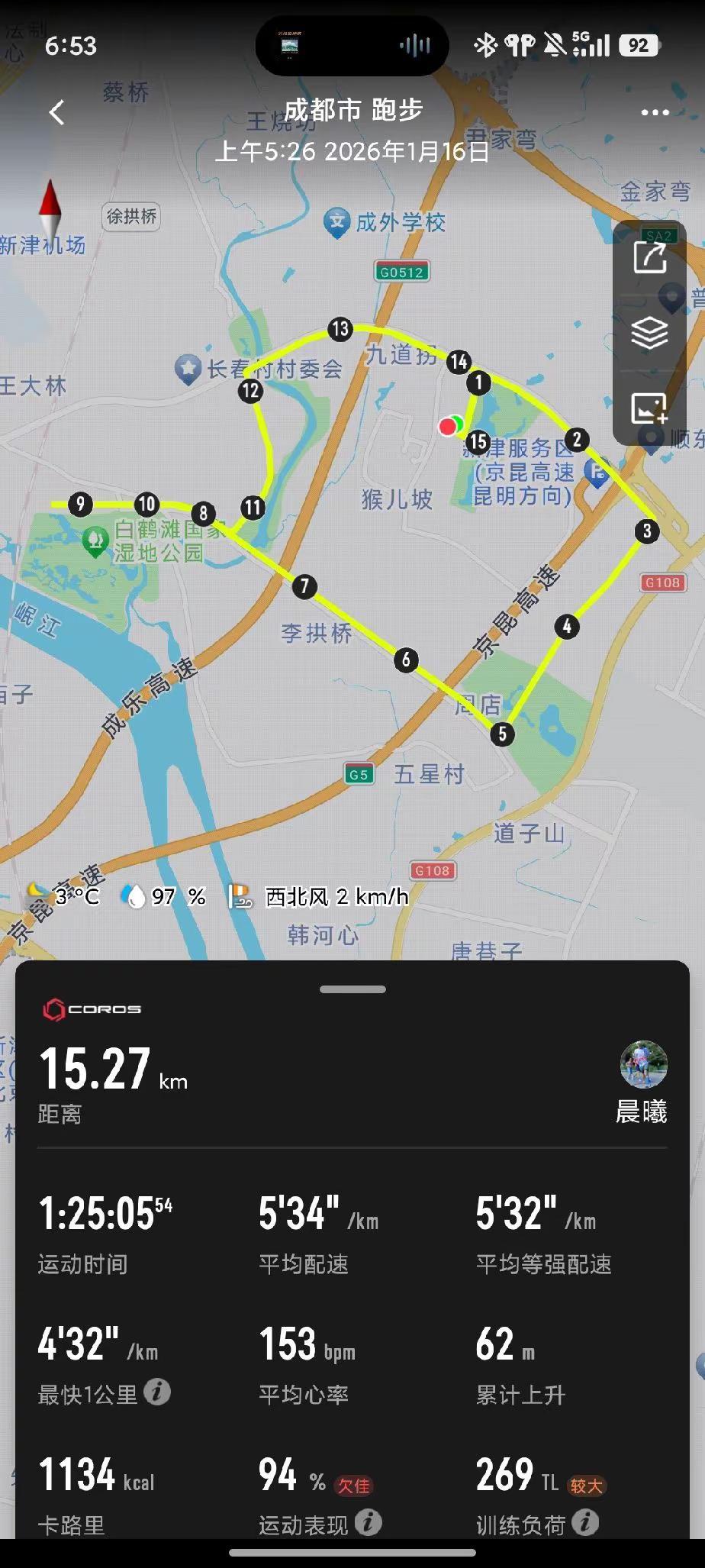 2026年1月第二周第四跑 昨日强度5(430)3(420)2(410)1(350)后恢复跑渐进从655逐渐提速到439已经踩在脚下,今年我的跑步目标是半马130,大家目标确定了吗,欢迎和我聊一聊我的开年跑轨迹 康比特公益跑团 跑进2026 周五趣玩日 坚持的意义昨天,追着风跑。今天,陪着风跑。强度课后,身体记得每一秒的5321。今晨有氧渐进,从655的对话开始,一步步找回轻盈。心率先平静,呼吸慢慢跟上,脚步终于听话。最后那程提到439,酸楚被风带走,只留下清透的耐力。真正的变强,不只在顶上去的那一刻。更是在沸腾之后,依然懂得如何与身体温柔相处,把昨日的强度,变成今日的续航。课表完成✅ 昨日:强度训练 5321✅ 今晨:有氧基础渐进跑 655 → 439跑过的路不会骗我,它正默默重塑我的心率与节奏。恢复,是更高明的训练。