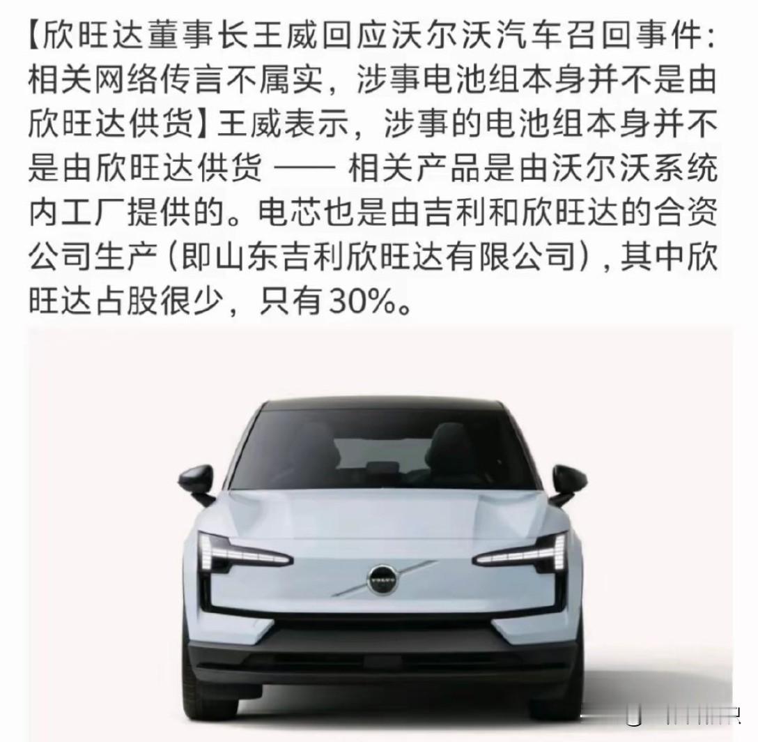 沃尔沃汽车召回事件,电池问题可能还有待商榷欣旺达回应该事件,电池组不...