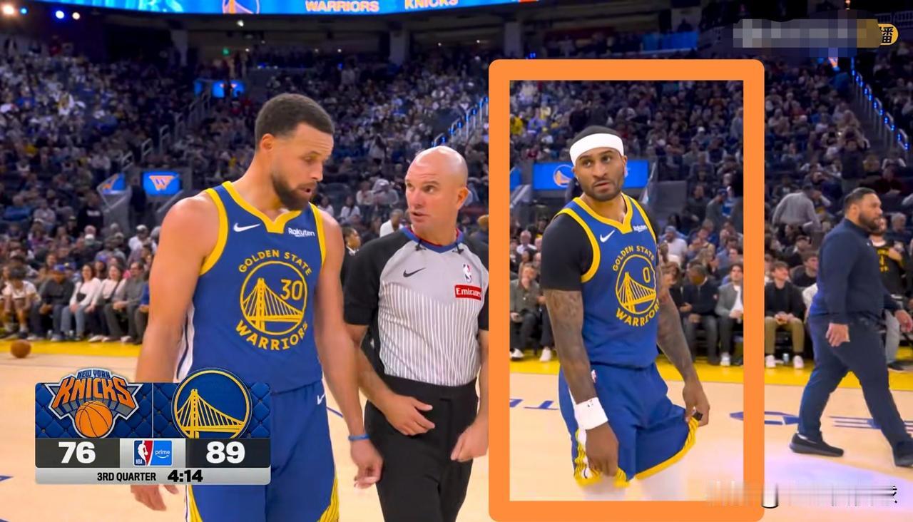 勇士悍将小佩顿不愧是库里的带刀护卫!在今天勇士主场迎战尼克斯的比赛中,当时比赛进行到了第三节的4分14秒,勇士以89:76领先对手。值得一提的是,在暂停期间,库里正在和裁判进行沟通交流,只见小佩顿紧紧的跟在老大哥库里的身后,可以说是寸步不离。众所周知,小佩顿被称为库里的带刀护卫,如今一看果然不假。