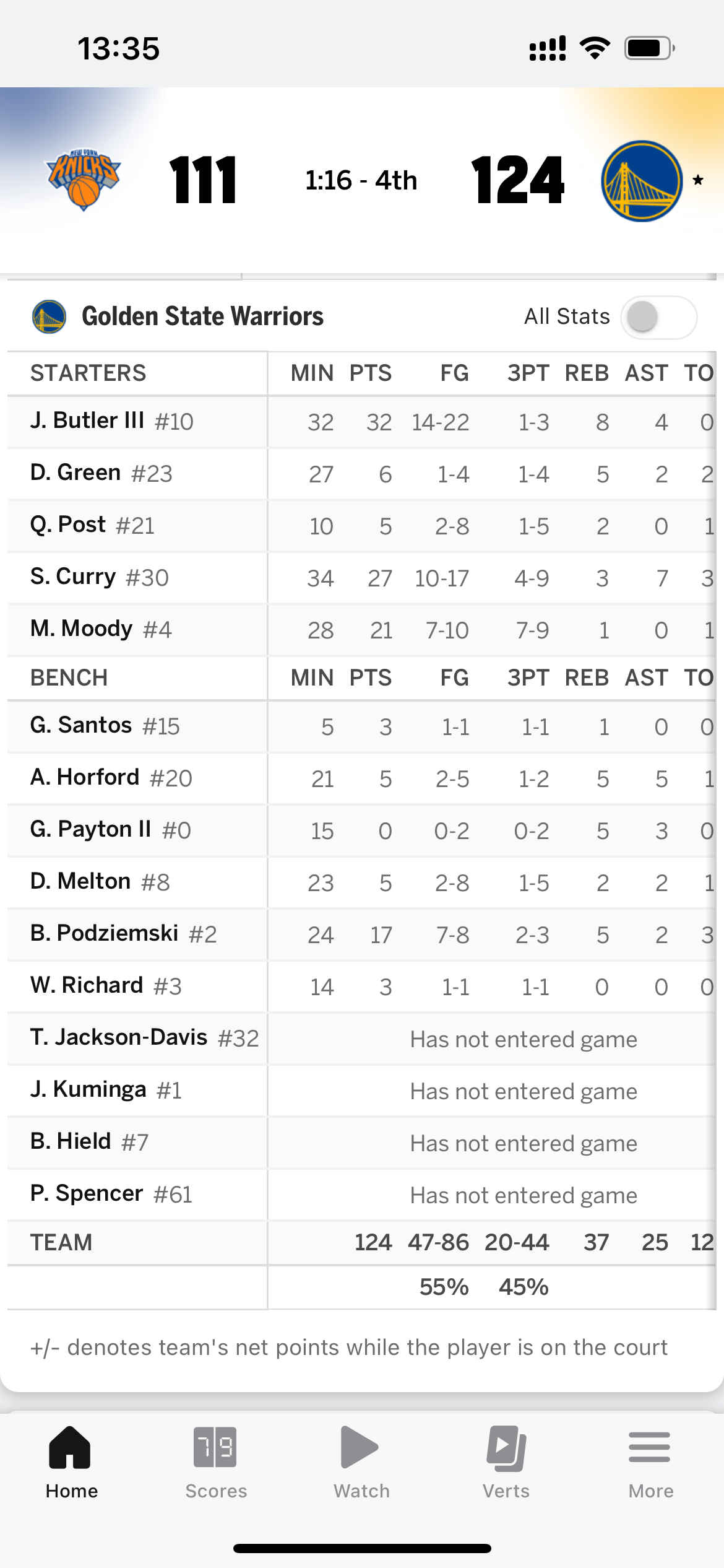 应该不打了,勇士两连胜,巴特勒32分,库里27分,穆迪21分,波杰17分,基本上就是这样了,看起来这个周末会很美好!金州勇士