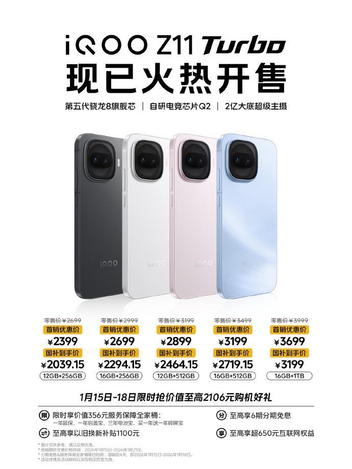 vivo这是感到有压力了?直接牙膏挤爆准备掀桌子!狠起来连自己都打一点都不假。 大家也看到了,2025年国内手机销量的前几名都非常接近,小到甚至只有几十万台的差距。 vivo已经连续好几年拿下国内市场第一,但今年的差距实在太小了,一点都不保险。苹果有iPhone17系列走量大户,小米的各大系列也稳扎稳打,华为连Mate80系列都降价走量,OPPO更是把真我都收回来了,荣耀更是多点开花新开很多新品想再次站在同一起跑线,所以大家都在寻求突破。 vivo2025年整体上还是稳扎稳打,但没有一个特别的爆款,要是还维持目前这个现状,再这样下去,2026年这第一名真保不住。似乎vivo也意识到了这个问题,于是2026年这第一款走量机,终于发力了。 这款手机就是iQOO Z11 Turbo,Z系列定位低于Neo次旗舰,主打的就是大电池+中高端芯片,但是Z11Turbo很多配置比Neo系列还强,真的是违背祖宗。所以说这是牙膏挤爆,连自己人都打是一点不夸张。 iQOO Z11 Turbo定位中屏小钢炮,6.59英寸的1.5K 144Hz的LTPS直屏,并且还是大R角设计,再加上金属中框和玻璃机身,厚度也做到7.9mm,上手手感真的非常像苹果,精致得不像是iQOO的Z系列,就2000+这个价位来说,上手的第一瞬间,绝对够惊艳, 性能方面则是骁龙8Gen5+Q2双芯,再加上7600毫安大电池+100W快充(6.59英寸给到7600毫安已经是这个尺寸的最大容量了),甚至配备了旗舰机才有得超声波3D指纹、IP68/IP69满级防尘防水。再加上2亿像素的HP5大底主摄,前置32MP,就这个配置,在2000+价位,怎么看都是诚意满满,牙膏挤爆。 现在就看隔壁红米的REDMI Turbo 5Max怎么出招了,反正iQOO Z11 Turbo这机器,在一众Turbo选手中开了一个好头。