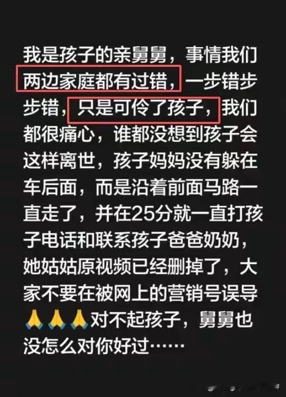 妈妈躲猫猫,9岁女孩追母身亡!!离异家庭子女之痛与监护之责 2026年初,湖南一名9岁女孩因母亲探望后躲藏离开,情绪崩溃当街晕倒,最终因“心源性休克”不幸离世。女孩来自离异家庭,此次悲剧撕开了这一群体普遍的情感困境与监护盲区。 从儿童心理学看,离异家庭子女本就面临依恋关系不稳定的挑战,突如其来的分离极易引发严重焦虑。事件后续曝光的父亲对赔偿事宜的关注多于悲痛,更折射出部分离异家庭中孩子情感价值被忽视的残酷现实。 法律上,离异父母在子女“交接”期间的监护责任存在模糊地带。悲剧警示我们,需系统性地加强离异父母的育儿协作教育,建立更安全的子女交接规范,并强化学校与社区的预警支持作用。 公众讨论应超越对个体的道德审判,聚焦于如何构建社会支持网络,从法律、教育和社区层面共同发力,切实保障所有孩子,无论家庭形态如何,都能在安全与爱的环境中成长。女孩离世 14岁女孩之死 幼童离世 成都女孩自缢 男童之死 五岁男童之死 5岁孩子离世 家长离奇死亡 小姑娘妈妈去世 九岁女孩失联 2岁半失踪女童 2岁半女童失踪 丧母的孩子 益阳失独妈妈 母亲自杀