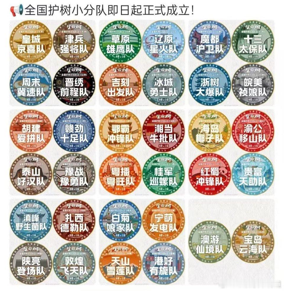 紫粉生命树剧宣小队又升级了,这次还配上了头像,每个省份都有自己的特色,比如胡建爱拼队