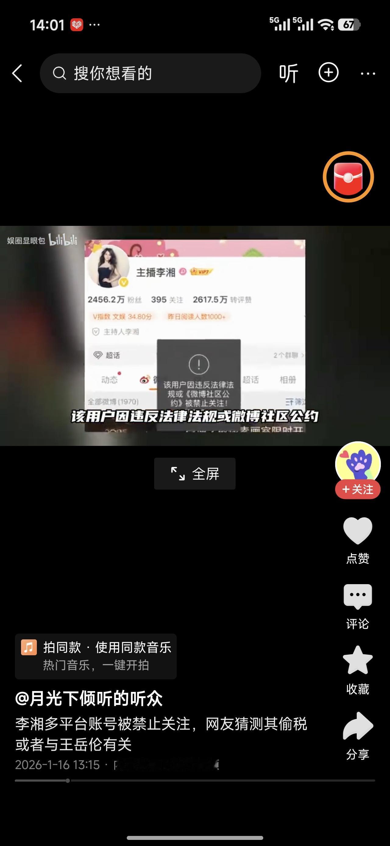 李湘全平台被禁止关注,这也不知是咋的。微博写的该用户因违反法律法规或者微博社区公约。而导致被禁止关注。 李湘 前阵子高调带闺女勇闯豪门盛宴,何等的风光。不知这个禁止关注会停留多久,还是说就一阵子,真不知道,拭目以待吧!后续会爆出什么冷门事件真的不知道。