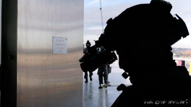 反恐警察与枪手交战,进行大规模训练演习 天空新闻获得了普尔港的这场戏剧的独家观看权,该剧旨在制定和测试反恐计划。 反恐警察举起枪械,紧急登上英格兰南海岸一艘大型渡轮,恐怖分子开枪射击乘客并劫持船长为人质。 这个“直播”只是演习——但该情景旨在测试英国对这一真实威胁的紧急响应能力。 枪械官员、人质谈判专家和急救人员必须决定在接下来的五个小时内如何应对,因为伊斯兰激进分子将载有约300名惊恐乘客的渡轮多层甲板变成了战场。 天空新闻周三获得了在普尔港独家观看这场剧情的播出权。 “这是我们制定计划、检验计划、加强应对能力的重要机会,”西南反恐警察助理警长安迪·希尔说。 “归根结底,我们需要能够在最坏的情况发生时做出反应。” 攻击开始了 这场模拟危机——并非基于任何具体情报或威胁——始于上午9点左右海岸警卫队发出警报,称一伙枪手在法国穿越英吉利海峡时对一艘汽车和客运渡轮发动袭击。 机上部分人员发出的紧急信息显示,武装分子正在向乘客开火。有人员死伤。 随着这艘真正的布列塔尼渡轮船驶向普尔,来自该地区的反恐专家枪械官员(CTSFO)以及数百名其他应急救援人员,包括急救人员和消防员,都被动员起来。 图片:专业枪械警员像真实渡轮劫持案一样动员 一架海岸警卫队直升机从头顶盘旋,岸边的斜坡被放下,以便武装警察迅速冲上甲板,通常存放车辆的地方。 两三名受害者的尸体已经清晰可见。 警方如何应对? 为了重新控制渡轮,队伍分开搜索多个楼层,包括舱室、开放式座位区和食堂。 反恐官员通过无线电与岸上的控制中心保持持续沟通,传达最新情况。 他们接到警觉,指挥桥上发生了对峙——船长指挥的渡轮区域。 图片:警方系统性地搜查船只,寻找假袭击者 他被劫持了。 对救援队来说,找到他的下落非常困难。 船员中的一名成员主动提出带路。 “我们有一张行走地图,”一名警察说。 她引导他们来到一扇通往桥梁的关闭门前。 武装警察毫不犹豫地冲入,射杀了一名劫持者,救出了队长。 “我没事,”船长说。“我被扣留了大约45分钟。” 留下警官们负责现场安全,其余队员则推进到另一层甲板,那里一排排独立的舱室沿着迷宫般的走廊延伸。 他们需要确定是否有袭击者藏在所有锁着的小屋里。警察用门禁卡逐一打开门。 图片:队伍推进到另一副牌组 突然,他们发现一名武装分子在其中一个房间里,挟持着一名受伤的妇女作为人质。 被突袭的他投降了,那位女士虽然手臂被刺伤,但被救了下来。 但噩梦还没结束。 在渡轮的另一端,又有两名枪手劫持了大约20名乘客,并将自己关在一间房间里。 其中一名袭击者要求与谈判代表交谈。 警方谈判代表在武装警员保护下前进,其中一名持弹盾牌。 这些武装分子似乎同情伊斯兰国等伊斯兰恐怖组织,提出了各种要求结束围困。 警察试图与他们讲理,但袭击者变得焦躁不安。 人质们被威胁要被斩首,发出恐惧的呼喊声。