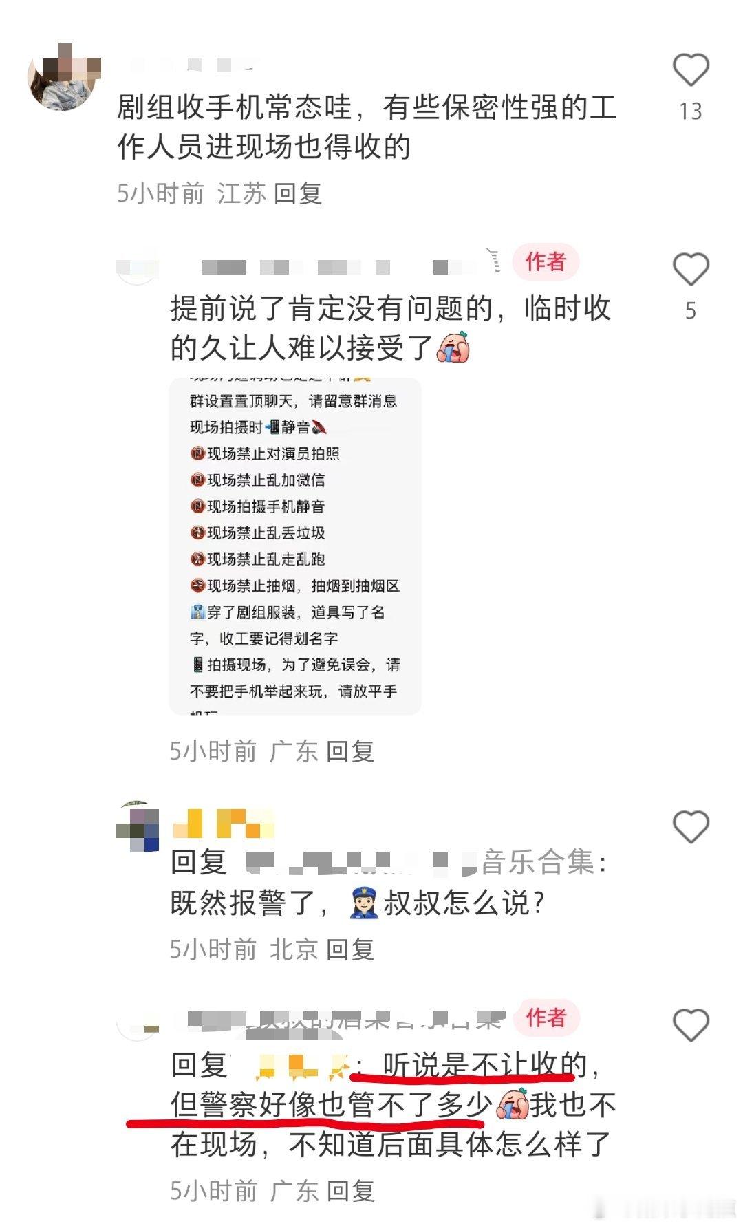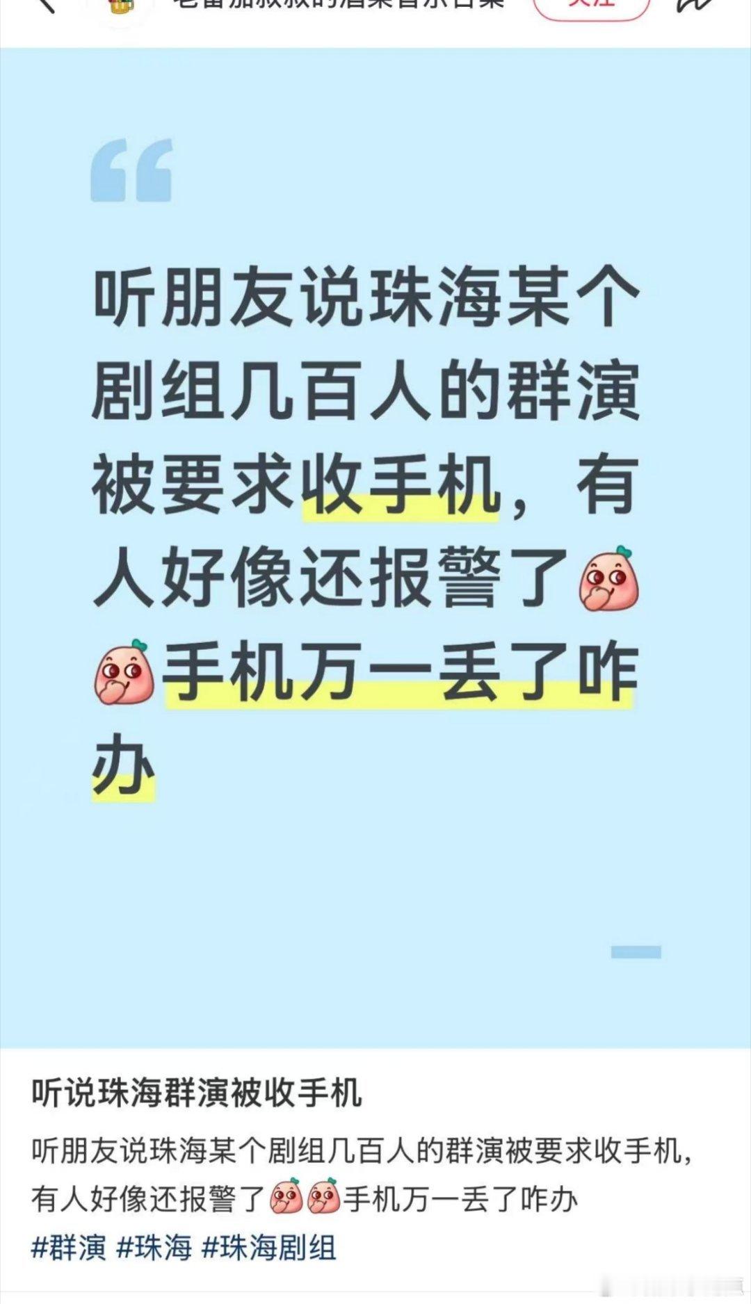 🍠有网友爆料毕雯珺 张淼怡《黎明前他会归来》剧组群演被要求收手机,有人好像还报👮♂️了?闹这么大吗?说给80的工资一开始招人的时候说可以平放玩手机,结果临时变卦?如果提前讲那没什么,如果这种临时通知确实挺过分的…