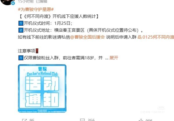 檀健次,卢昱晓,曹骏《何不同舟渡》开机 时间:2026年1月25日 地点:横店