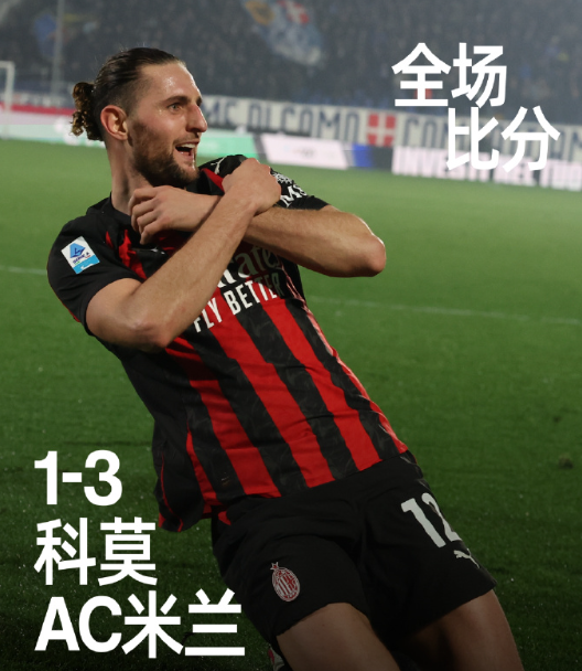 全场比赛结束,凭借着拉比奥的梅开二度以及恩昆库的点球破门,我们在客场3-1逆转战胜科莫。