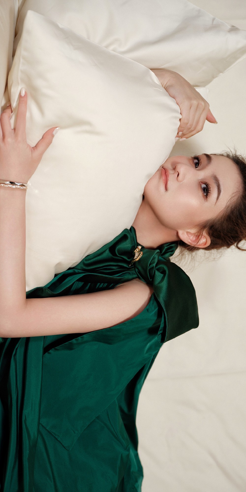 何超莲小绿裙光脚丫,穿上春天的颜色好迷人。何超莲
