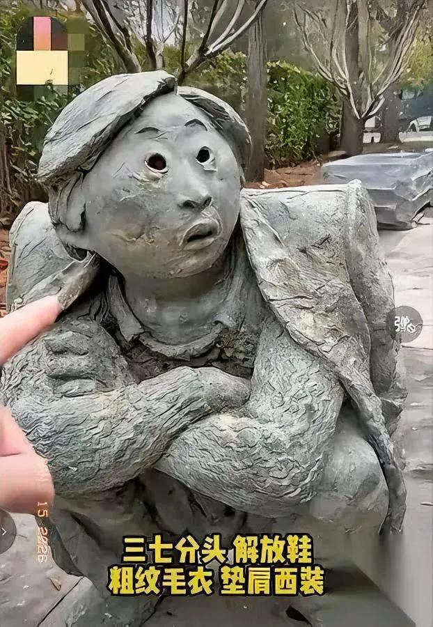 00年清华雕塑,今天才炸出来。 梳着油亮三七分—— 像汉奸头,穿不合身西装,蹲成亚洲蹲,脚蹬解放鞋,眼神空得能装下工地的灰。 这就是他们眼里的农民工?西装是“想体面却没底气”的局促,发型是“刻意泼脏水”的油腻,连最日常的蹲姿都成了“底层符号”——合着农民工的辛苦,在美院学生那是用来贴“丑角标签”的素材? 26年才曝光,我想问当年做这个的人:现在再看这尊像,你会不会觉得——自己当年是用“艺术”的名义,踩碎了农民工的尊严? 农民工的样子从来不是油头粉面的“汉奸头”,是晒得黢黑的脸、磨破的手套、沾着水泥的裤脚——是拼着命讨生活的“活人”,不是你们刻在石头上的“死符号”。 要是你看到这雕塑,会不会骂一句:“这哪是我们?这是你们编出来的丑八怪!” 评论区聊聊,你能接受这种“把苦难当丑料”的艺术吗?