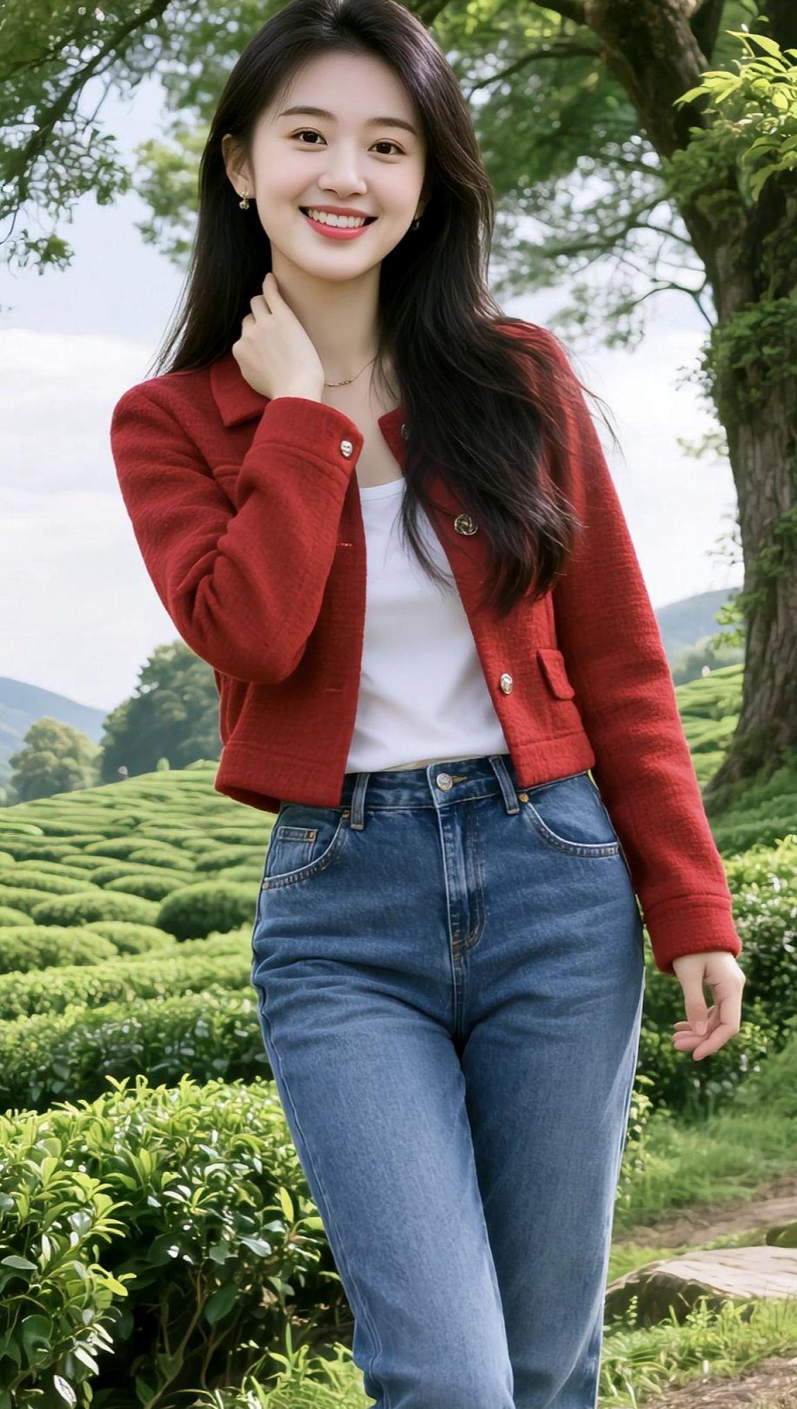 AI田园风生活照 抖音ai创作 山里姑娘 紧身牛仔裤