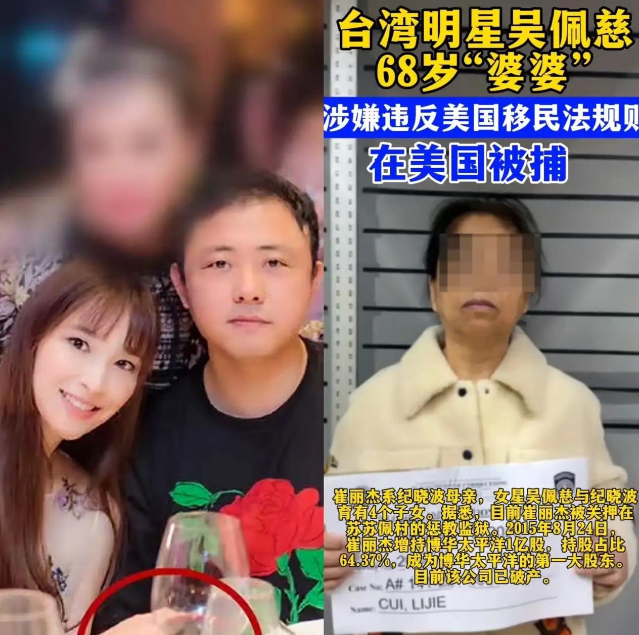 吴佩慈最幸运的事, 估计就是没能把自己嫁出去, 未婚夫进去了,婆婆也被抓了,她反而没有卷进风波之中。 想当年她放着“九头身美女”的星光不要,6年连剖4娃,砸8.9亿给婆婆崔丽杰送水晶龙,把姿态低到尘埃里,却始终没被纪家认下,还遭人嘲讽是“未婚妈妈”。 可如今再看,这哪是豪门梦碎,分明是精准避险!纪晓波成了涉案人员行踪成谜,崔丽杰因违反移民法被美国ICE拘留,纪家帝国彻底崩塌。 没婚姻束缚的她,拿着生育奖励的资产和孩子的抚养费,在香港过着精致生活,完全没被牵连。 这哪是傻,分明是顶级清醒——她要的从不是虚名,而是实打实的保障。 那些嘲笑她卑微的人,现在是不是该反过来佩服她的远见?你觉得她是早有预谋,还是误打误撞躲过一劫?