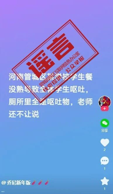 #网传郑州学生餐致呕系谣言#【“郑州有学校学生餐没熟致全体呕吐”信息不实!发布者被批评】#郑州有学校学生餐没熟致呕吐信息不实#近日,一则关于“河南郑州管城区某学校学生餐没熟导致全体学生呕吐”的消息引发关注。1月16日,南都N视频记者从郑州市网信部门获悉,经管城回族区教育局、市场监管局等相关部门核实,该消息不实,涉事学校并未发生所述问题。发布者已被批评教育,相关消息已删除。郑州市网信部门通报称,网络账号“乔尼新年版”发布信息称,“河南管城区某学校学生餐没熟导致全体学生呕吐。”经管城回族区教育局、市场监管局等相关部门核实,该学校并未发生所述问题。目前,管城回族区网信、公安部门已对发布该信息的相关责任人进行了批评教育,相关信息已删除。网信部门提醒,在网络上发布信息、发表言论必须遵守法律法规,对于编造、传播、散布谣言等行为,网信、公安等部门将依法依规严厉打击。南都N视频记者 林诗妍